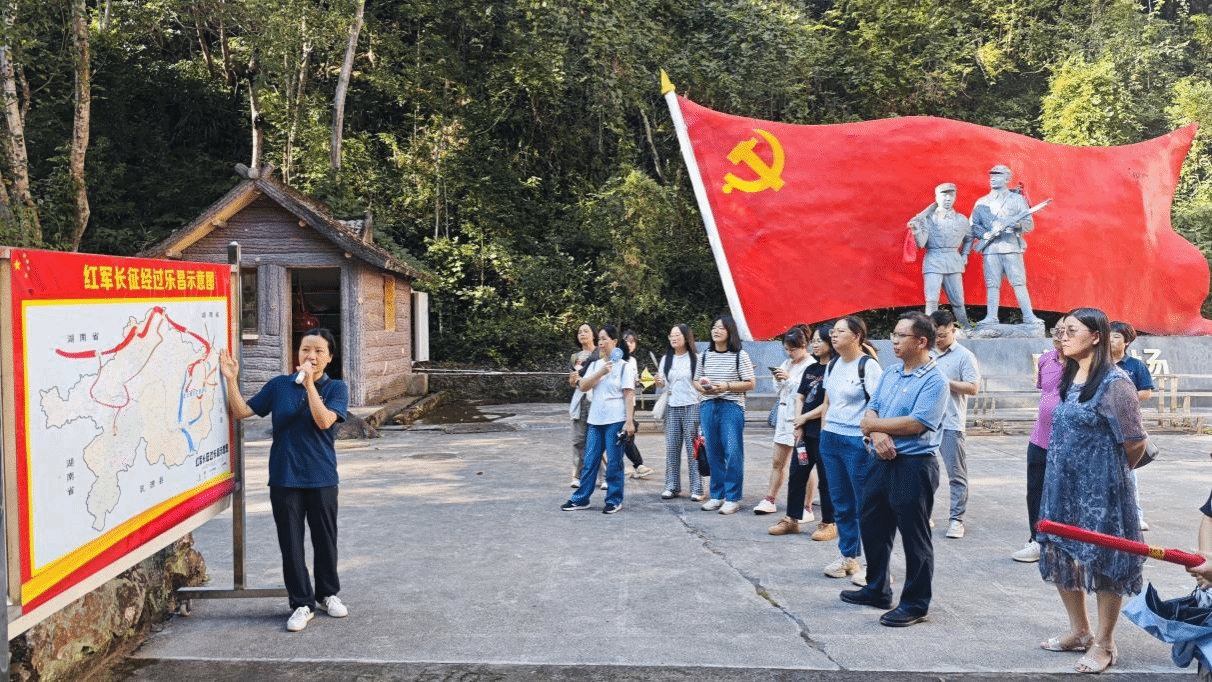 在龙王潭红军广场,大家聆听了讲解员讲述1934年红一军团长征途经此地的历史,红军在敌军围追堵截的极端困境中,仍以顽强的意志穿越龙王潭险峻山区,即使自身供给极度困难,在经过龙王潭地区时,也始终严格遵守群众纪律,不拿群众一针一线,并积极宣传革命道理,帮助穷苦百姓。通过实地参观红军雕塑、红军碑及红军长征历史文化宣传栏,大家深刻感受到红军战士不畏艰难、勇往直前的革命精神。随后,大家沿着蜿蜒崎岖的小径徒步重走红军路,身临其境体验革命道路的曲折艰辛,感受红军同甘共苦的深厚情谊,在无限反思中传承宝贵的红军精神。