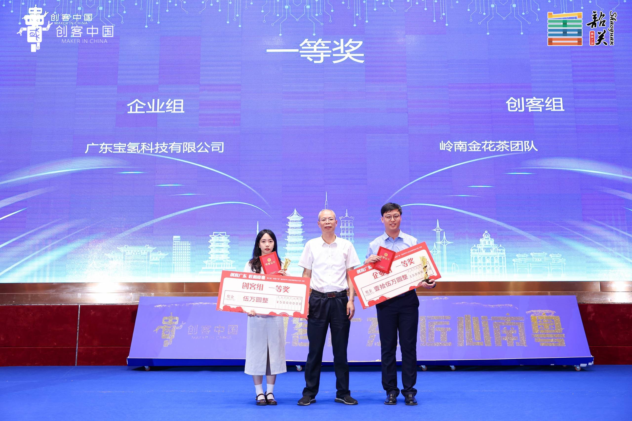 韶关市工业和信息化局局长张南生为一等奖项目颁奖