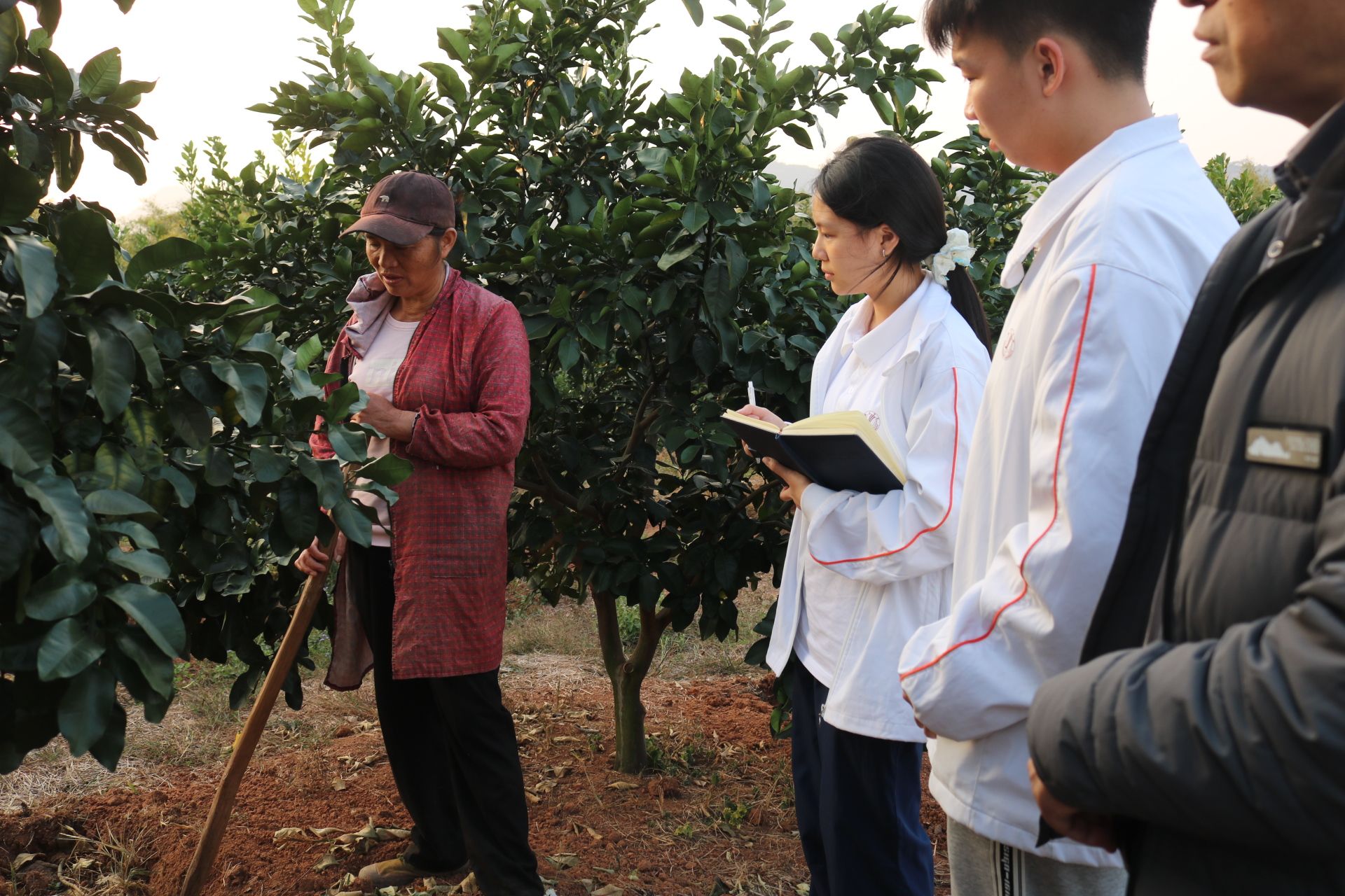 深入田间,调研问诊谋发展。学生创新创业团队深入果园一线,开展全产业链调研。团队不仅细致了解柚子种植管理技术,还实地观摩并记录了柚农自制有机肥的传统工艺流程。在农户指导下,学生们对堆肥原料配比、发酵周期控制及环保效益进行了了解,并围绕品种改良、病虫害防治、品牌建设等产业发展痛点,与多位种植大户展开深度访谈,收集大量一手资料,为后续科技助农项目提供扎实的现实依据。