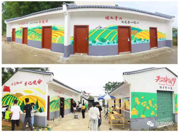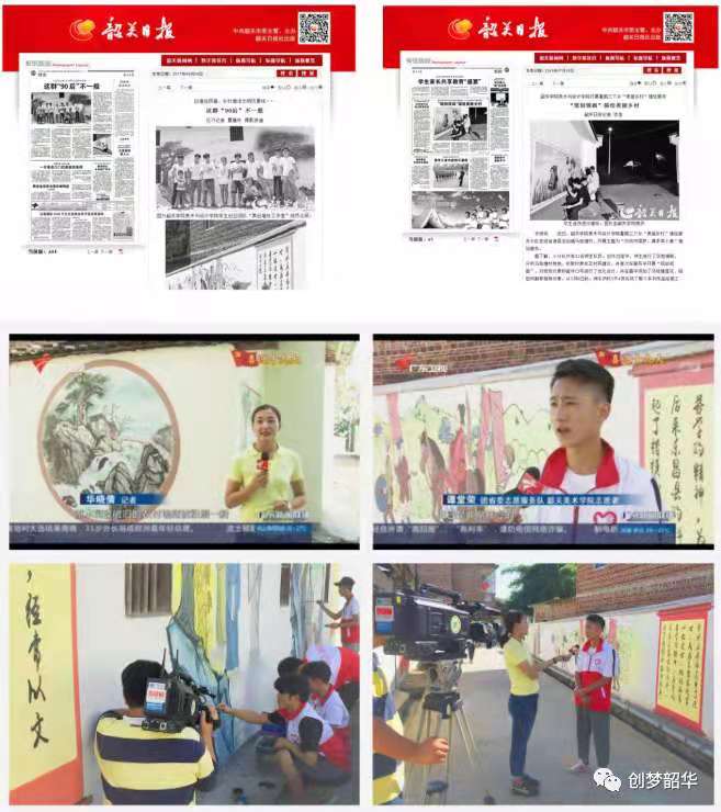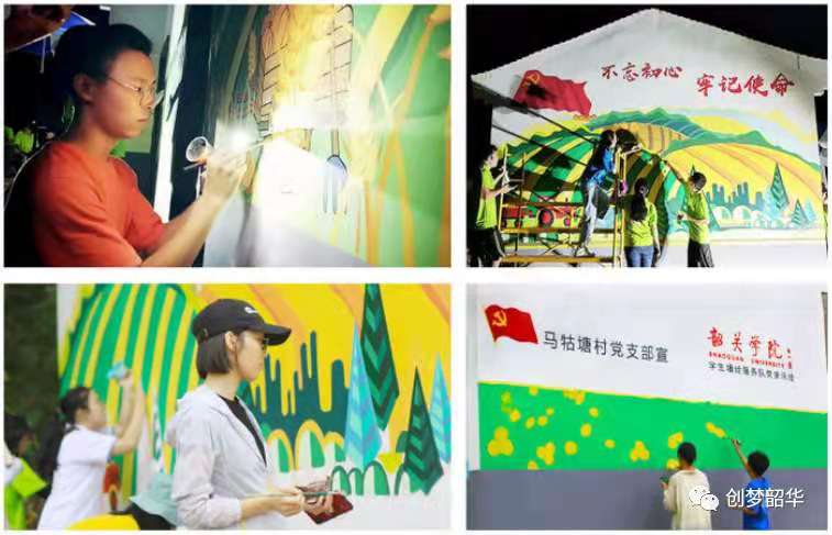 “彩绘插画创作”专创工作室注重产学研成果转化,积极把研学工作与创新创业实践结合,美化城乡,服务地方。其中,学院学生共创企业“奥创彩绘艺术工作室”,开发墙体控湿技术与创新墙绘工艺,并参加城乡公益创作共计100余项,绘制了40余个村落,创作面积约2.4万平方米的旧墙。工作室成员们还积极参加学校援藏支教计划,把墙绘技术和美术知识带到了西藏林芝,受到当地政府、教育局的好评。项目组“扎根粤北、服务地方”的事迹多次被广东卫视、韶关电视台等多家媒体报道。