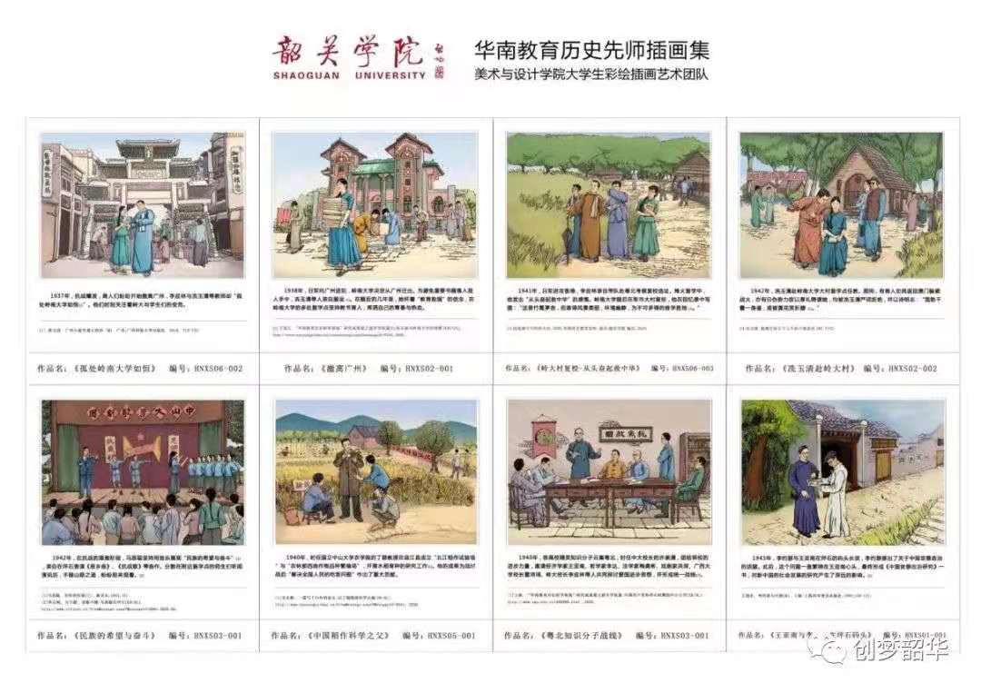 “彩绘插画创作”专创工作室发挥艺术创新“软”实力,开发新工艺、新技法,并绘制红色故事连环画,讲好党的故事、革命的故事、英雄的故事。为解决地方“红色教育”故事插画素材匮乏的问题,党员教师带领作室组织4个专业的40名学生,研发“连环画与数码插画”交融创新工艺,开发创作红色插画素材。团队先后完成了《华南教育历史先师》、《“红灰儿女”在粤北》系列故事连环画创作,作品荣获广东省华南教育历史研学成果征集大赛铜奖,并在广东省博物馆以及韶关学院凤凰卫视“华南教育历史研学成果展厅”展出。研学团队在全院里掀起了一股师生们学史爱国的红色创作热潮,增强了青年党员学子们厚植爱党、爱国、爱社会主义的情感与创作激情。