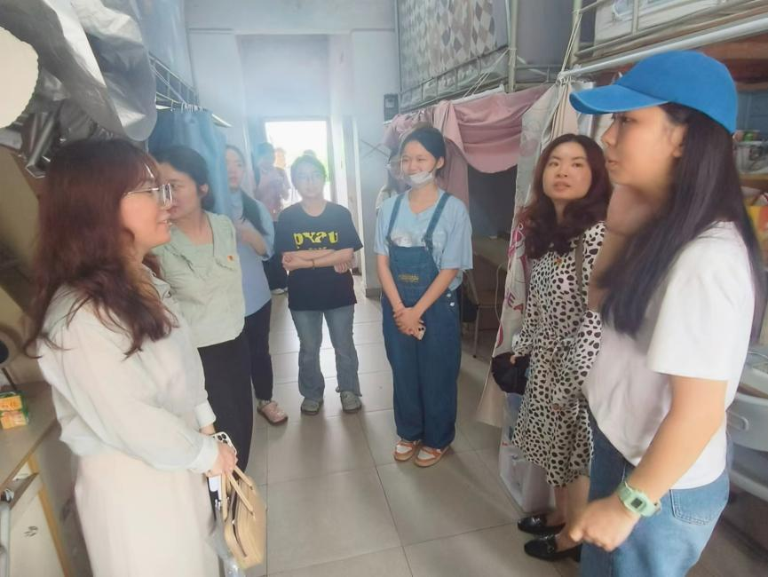 午餐会后,党员们走访了紫荆苑社区学生宿舍,与同学们进行了亲切地交谈,叮嘱同学们要注重宿舍卫生环境,注意用水用电安全,营造一个安全、健康、舒适的学习和生活环境。
