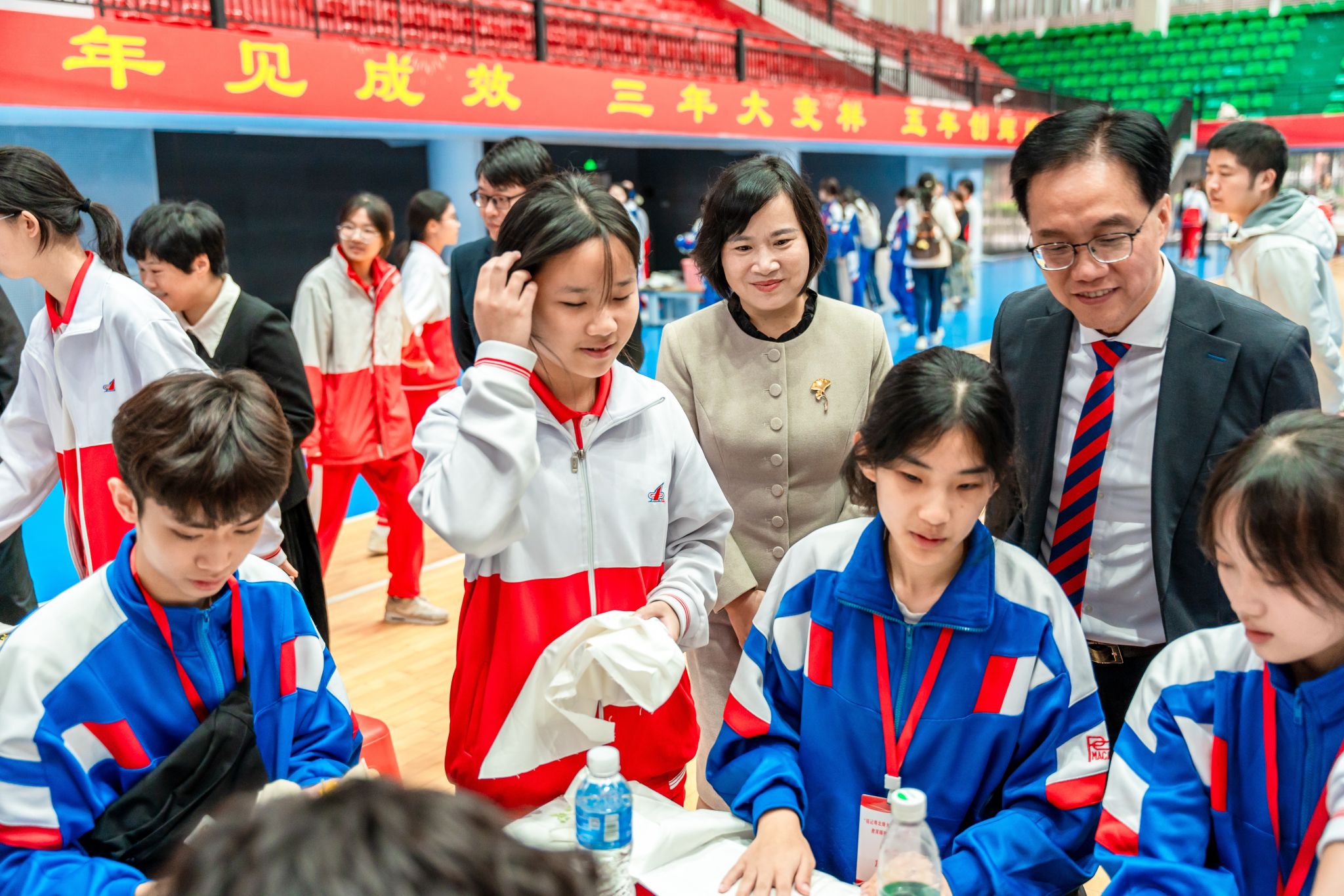 韶关学院校长张晓红、澳门培正中学校长高锦辉与学生一起参与非遗活动