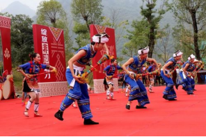 瑶族传统歌舞:瑶族的舞蹈与狩猎、农事和祭祀等有着密切关系。同时,瑶族传统的鼓、歌、舞又常常融为一体,即鼓之、歌之、舞之。主要有长鼓舞、铜鼓舞和陶鼓舞等。相传瑶族祖先盘王的生日就是在农历十月十六日,每年到这个时候,恰巧也是秋天收获的时节,为纪念祖先和欢庆丰收,瑶家便于这天会聚一堂,举行“耍歌堂”活动。节日的前一天,寨中就开始杀猪宰牛,备好鸡鸭鱼肉,磨豆腐,做糍粑,将酿米酒拿来招待四方来客。瑶族的耍歌堂进行游神、过九州、祭法真等仪式,同时还敲锣打鼓、唱山歌、跳长鼓舞、放铳土炮,跳得百里瑶山震动起来。瑶胞们生活于大山之中,土地比别处更为贫瘠,他们的生活环境可谓艰辛,但他们也同样张扬自己的快乐,从艰难生活中感受歌舞的欢欣和鼓舞。