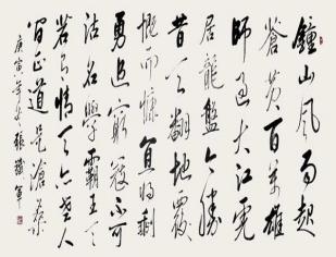 汉字书法:汉字书法在中国五千年璀璨的文明及无与伦比的丰富文字记载都已为世人所认可,在这一博大精深的历史长河中,中国的书画艺术以其独特的艺术形式和艺术语言再现了这一历时性的嬗变过程。而具有姊妹性质的书画艺术在历史的嬗变中又以其互补性和独立性释读了中国的传统文化内涵。