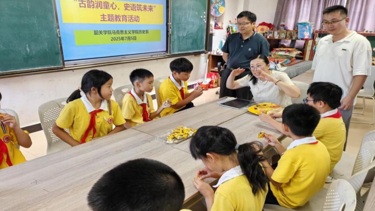 7月5日,韶关学院马克思主义学院历史学系教师团队在系主任侯锐博士的带领下,走进新丰县沙田镇中心小学,精心开展“古韵润童心・史语筑未来”主题教育活动,为山区留守儿童献上了一场别开生面的历史文化盛宴。