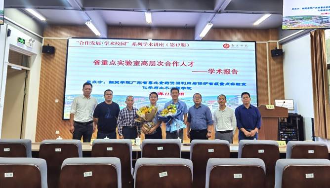 11月10日上午,广东省粤北食药资源利用与保护重点实验室和化学与土木工程学院联合举办省重点实验室高层次人才学术报告,特邀省重点实验室高层次合作人才、华南理工大学黄良斌教授和李建晓副教授在明德区行德楼一楼学术报告厅作专题报告。参加本次报告会的有省重点实验室主任钟瑞敏、副主任马崇坚、化学与土木工程学院院长张圣领、省重点实验室骨干教师及化学与土木工程学院教师、学生代表。