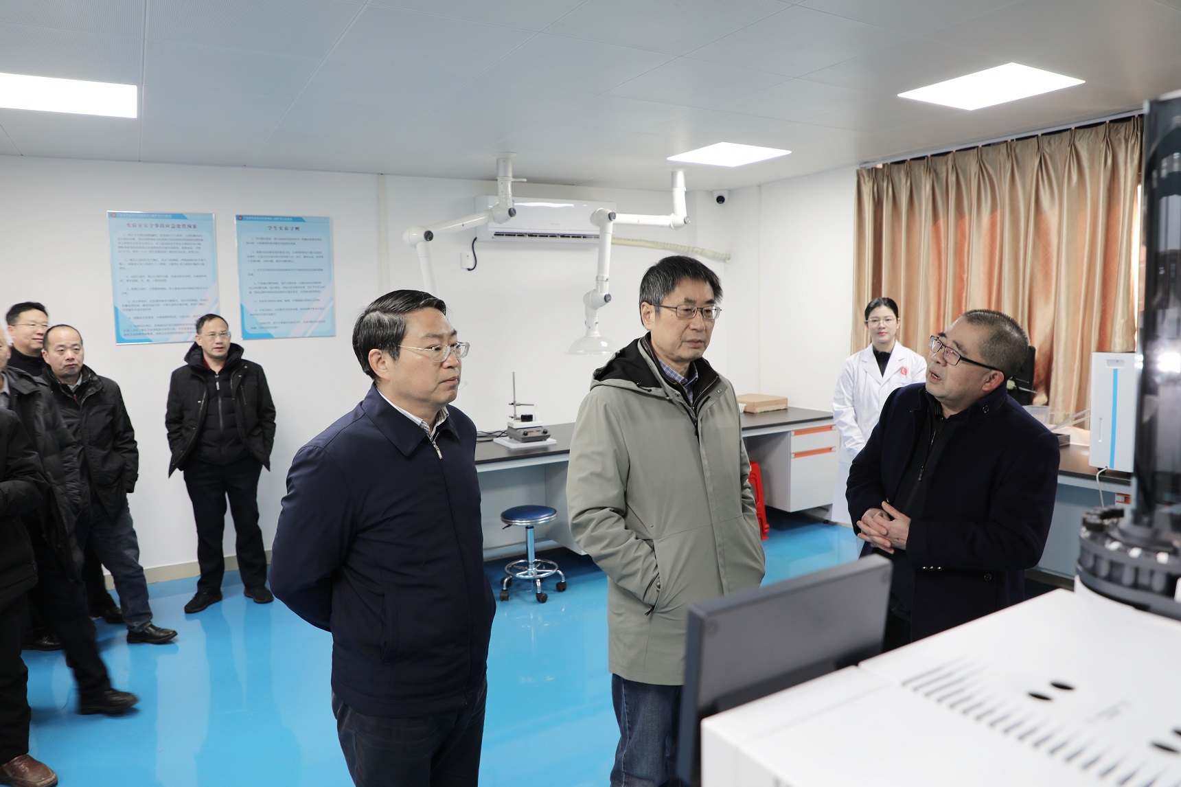 会议期间,廖益陪同谢明勇院士一行参观了省重点实验室的精密仪器室、技术开发中试车间、团队实验室和课题组研究室,并与相关团队研究员进行了科研情况交流。