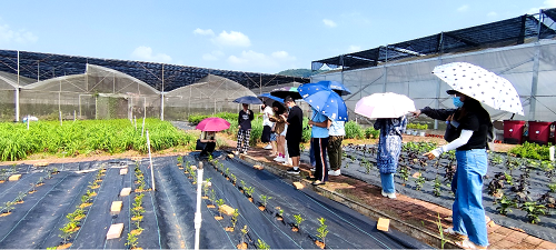 活动中,老师们兴致勃勃地参观了芳香植物苗圃,了解了迷迭香、香茅、艾草等芳香植物的功效及利用价值。
