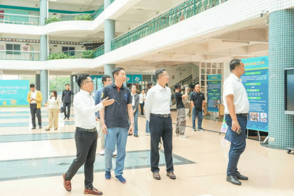 随后,专家组现场观摩大学生志愿者韵律操展示,并赴武江区重阳学校考察美育浸润实施情况,参观校园文化墙绘,并与师生交流,了解“大-中-小一体化”机制落地效果。