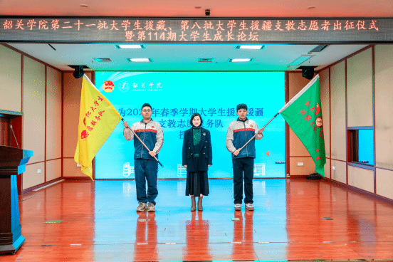 1月5日上午,学校在明德区蔡加赞楼智慧课室举办第二十一批大学生援藏、第八批大学生援疆支教志愿服务队出征仪式暨第114期大学生成长论坛。校长张晓红、党委副书记邓惠毅、副校长曾志嵘、副校长何金明、副校长田广增、副校长郭会时出席本次活动。