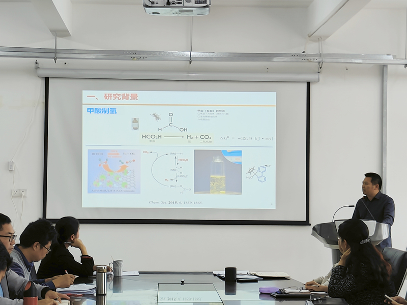 在报告中,罗人仕围绕研究背景、新型双氮铱催化剂的设计、双氮铱催化剂的应用等方面介绍了自己的研究领域及相关研究成果。在讲座过程中,罗人仕分享了自己做科研的心得,并介绍了接下来的研究方向。罗人仕表示,期待能与老师们擦出思想火花,增进交流与合作,助力学院的学科建设工作。