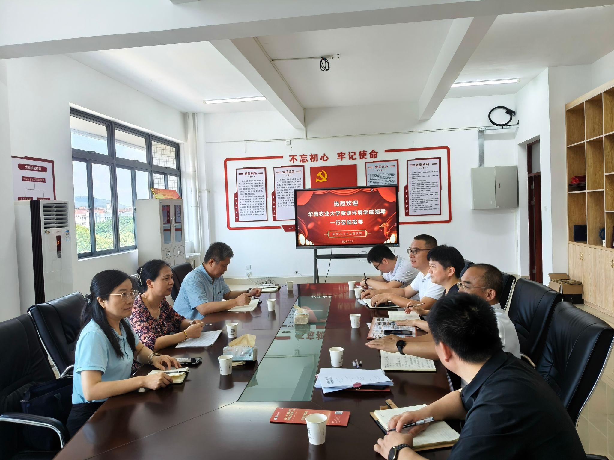 6月25日,华南农业大学资源环境学院党委书记易晖、院长刘承帅、副院长舒迎花一行到访化学与土木工程学院开展学术交流和研究生招生宣传。化学与土木工程学院党委书记张洁珍、院长张圣领、副院长王瑞龙以及教师代表出席了交流会。