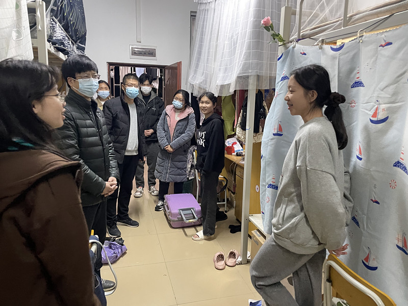 为扎实做好2023年春季学期开学各项工作,了解学生返校情况。2月16日晚,化学与土木工程学院党委书记钟良珍、党委副书记卢成钢以及学院全体辅导员深入学生社区关心慰问返校同学。
