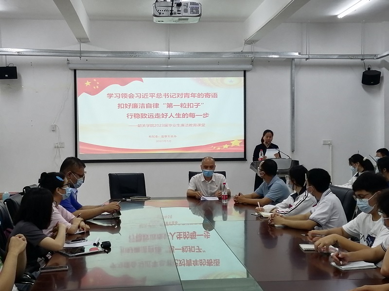 为深入贯彻落实习近平总书记关于加强廉洁文化建设的重要论述,贯彻落实《关于加强新时代廉洁文化建设的意见》,进一步加强大学生廉洁教育,5月24日晚,我院邀请发展规划部副部长戚鹏宇同志为学院师生讲授题为《学习领会习近平总书记对青年的寄语扣好廉洁自律“第一粒扣子” 行稳致远走好人生的每一步》的廉洁教育课,教育课由学院主持工作党委副书记张洁珍主持,教师代表、毕业生代表,非毕业生党员、入党积极分子80余人到场聆听。