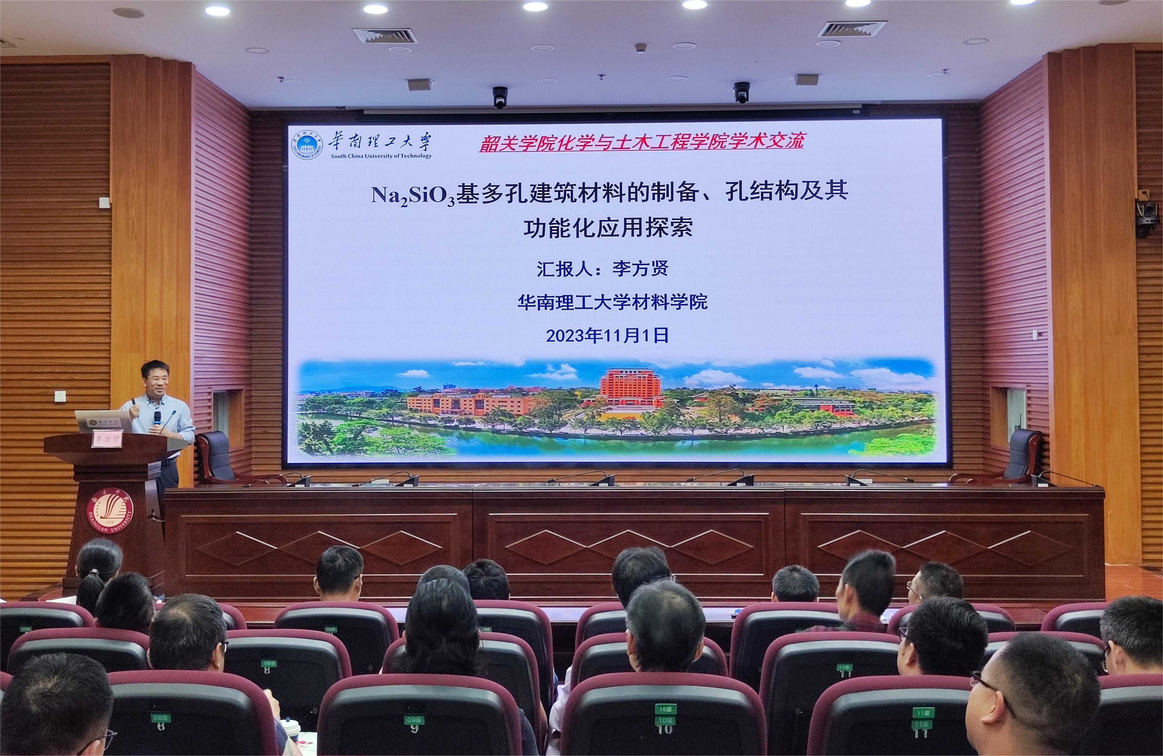 11月1日下午,化学与土木工程学院在明德区明德楼学术报告厅举办第十九期“化土成器”学术讲座。本次讲座邀请了华南理工大学材料学院副教授李方贤以《Na2SiO3基多孔建筑材料的制备、孔结构及其功能化应用探索》为题为师生作专题讲座。讲座由院长张圣领主持,学院全体教职工及学生代表参加此次学术讲座。