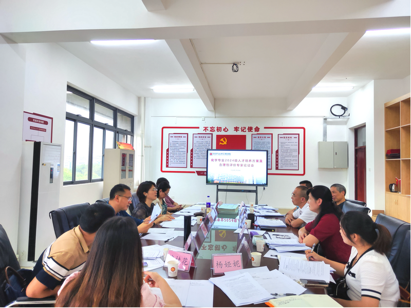 会上,学院院长张圣领首先发表了致辞,对前来参加会议的各位专家表示感谢。随后,专业负责人王小兵对化学专业2024年人才培养方案进行认真细致的汇报。专家组认真查阅了相关资料,经过充分讨论,对人才培养方案给予客观、中肯的点评和指导,并围绕培养目标、课程体系调整、课程模块、学时学分等方面提出了针对性的意见和建议。随后,教学副院长焦琳娟介绍了化学专业《培养目标达成评价实施细则》、《毕业要求达成评价实施细则》、《课程目标达成评价实施细则》、《培养目标、毕业要求和课程体系合理性评价管理及实施办法》等四份制度文件。论证专家认真听取了四份制度文件的汇报,经过讨论,专家组给予了充分的肯定,同时,对四份制度文件的核心理念、结果反馈、毕业要求权重等细节进行补充,形成了一系列建设性意见和优化建议。