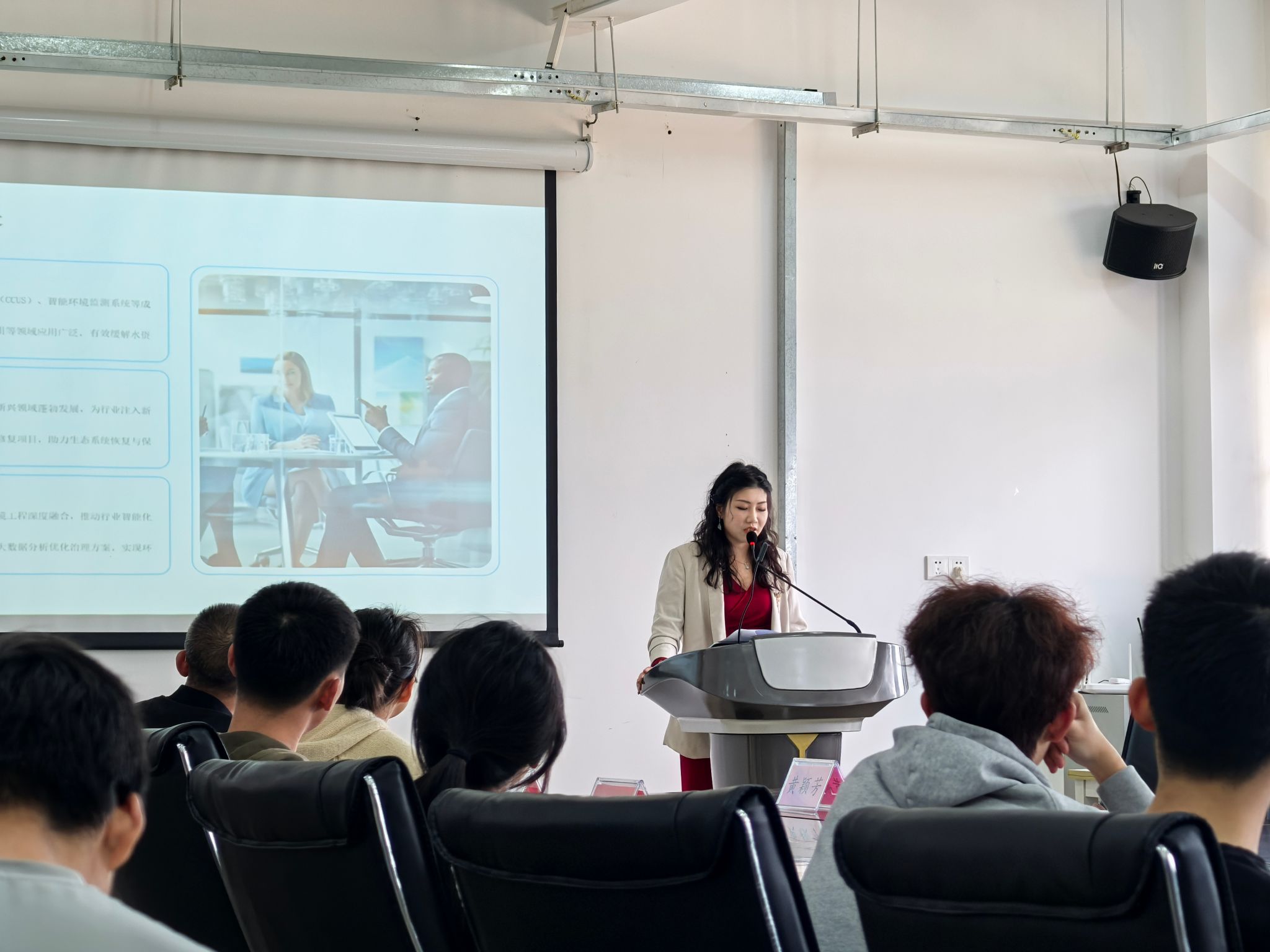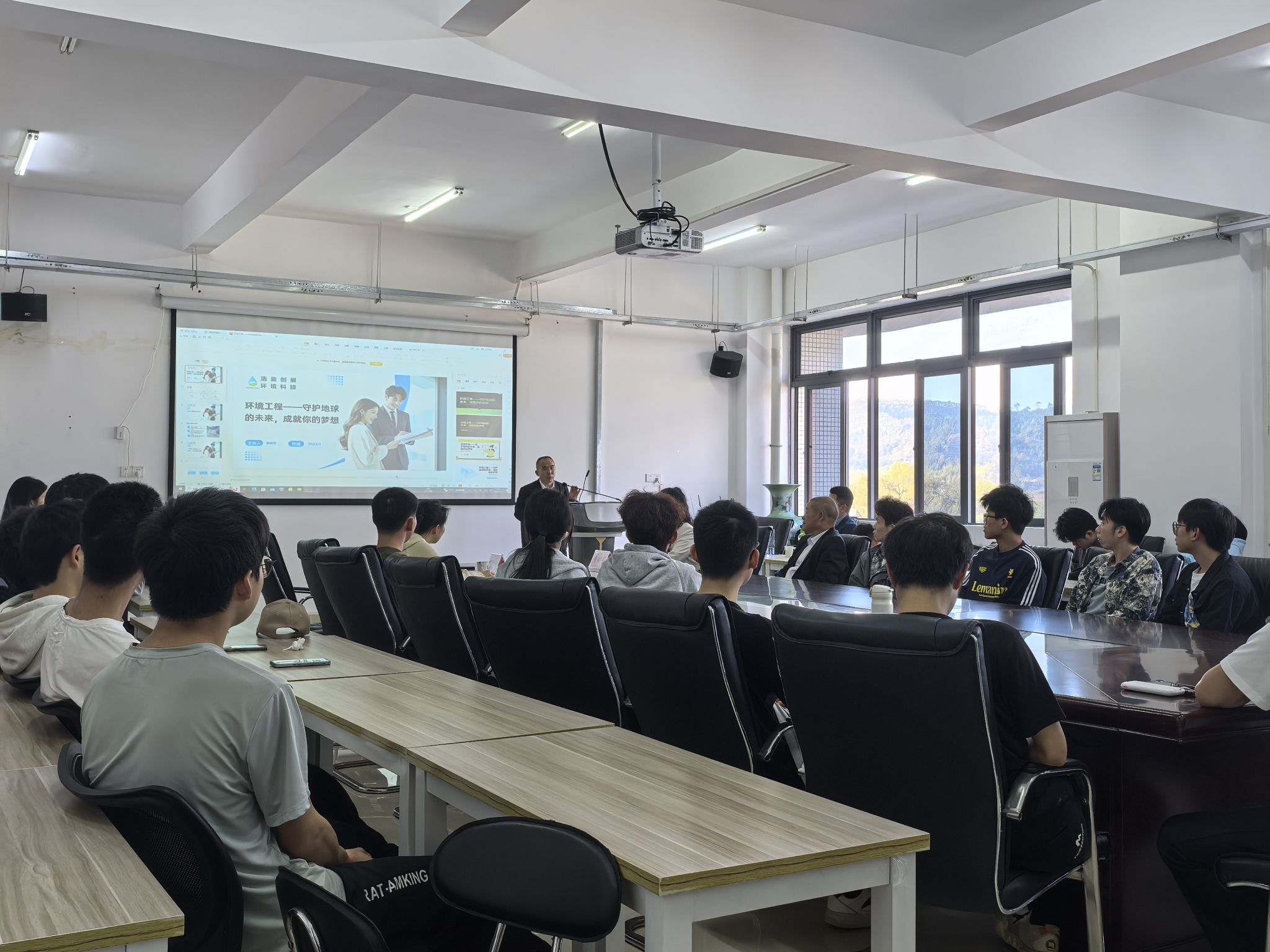 讲座伊始,黄颖芳凭借深厚的行业积淀与实战经验,深入浅出地讲解了环境工程专业的核心价值与行业前沿趋势。她透彻分析了当前环保产业的蓬勃兴起,强调环境工程在水、大气、土壤、固废等领域的污染治理与生态修复中的关键作用,并指出随着科技迭代与社会需求升级,环境工程正不断拓展新的应用领域。她激励同学们要坚守专业阵地,勇于探索未知,为环保事业添砖加瓦。谈及创业契机,黄颖芳以亲身创业历程为蓝本,从环境工程市场蓝海、技术创新及成功案例等维度,生动展现了环境工程专业在创业舞台的独特魅力,并鼓励同学们紧跟市场需求,发挥专业优势,勇敢踏上创业征途。
