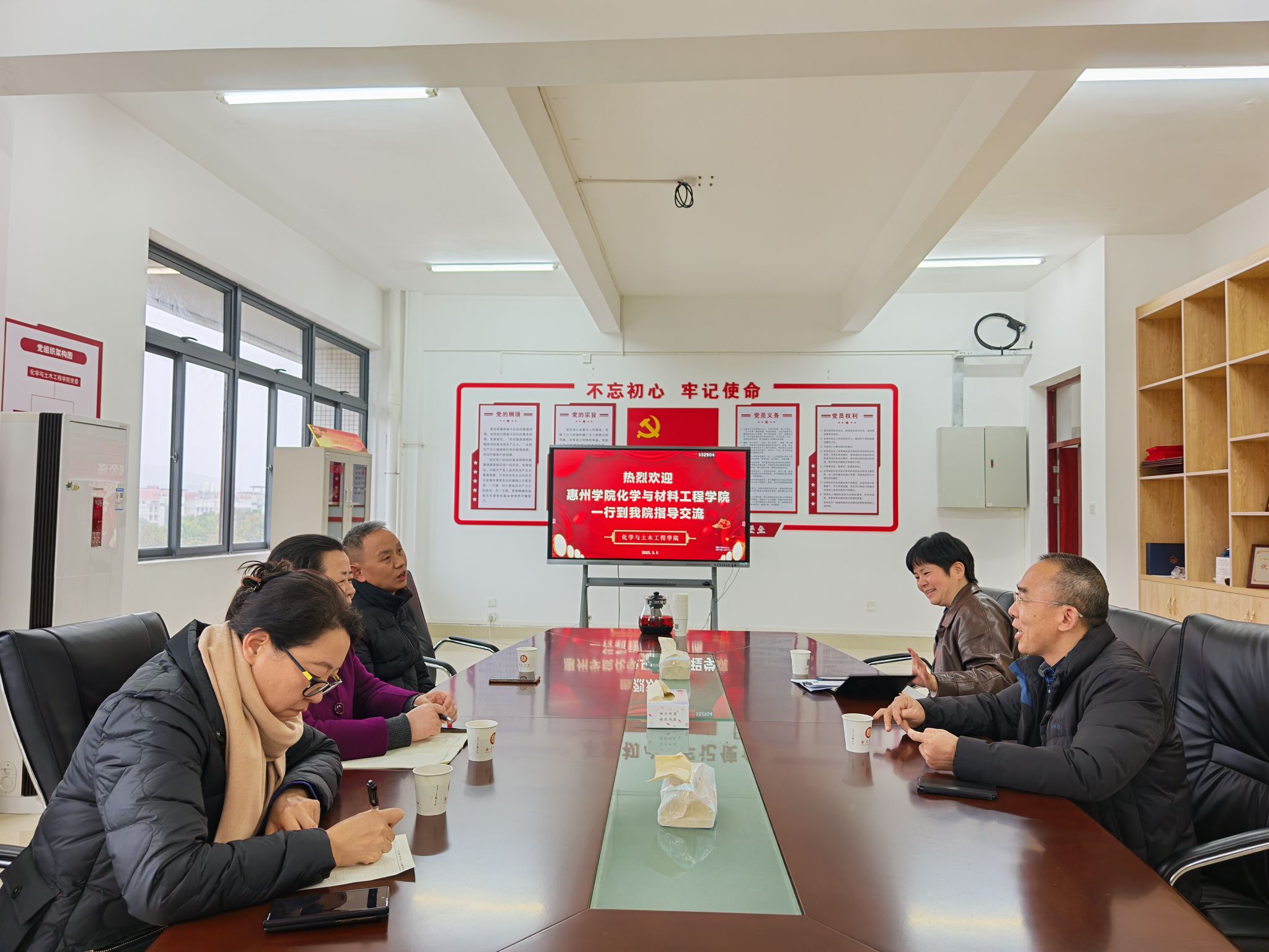 3月5日,惠州学院化学与材料工程学院党委书记郭爱平一行莅临我院考察交流。我院党委书记张洁珍、院长张圣领、副院长丘秀珍和田长安热情接待了来访客人。