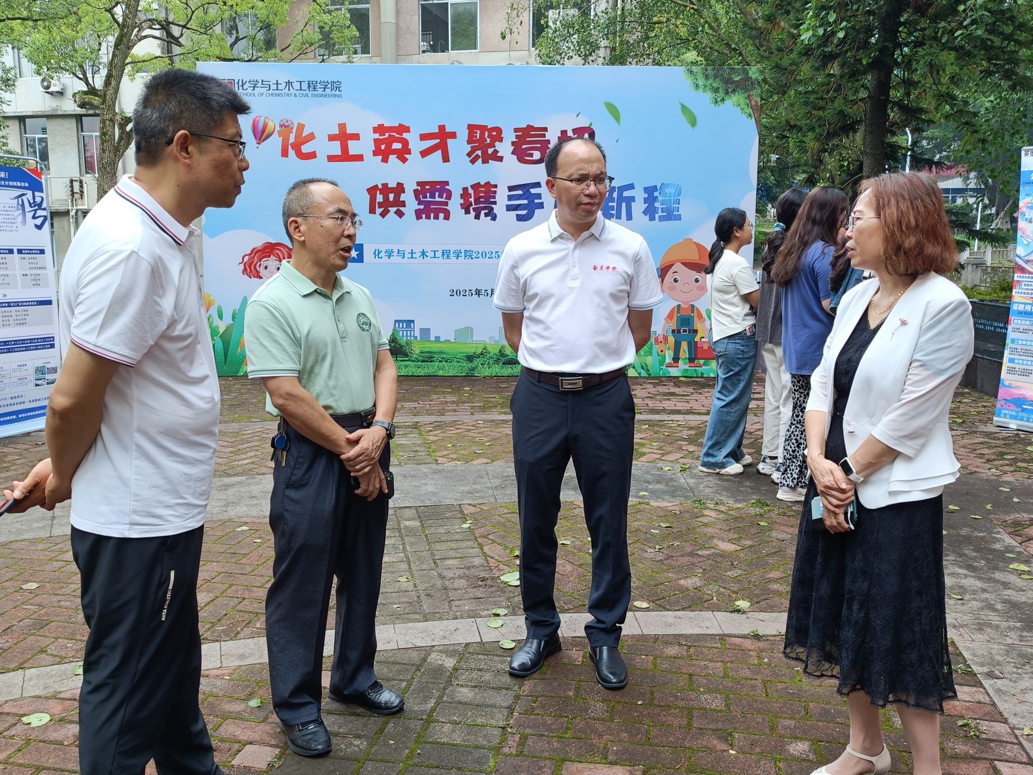 5月7日,由学校招生与就业指导中心主办,化学与土木工程学院承办的“‘化土英才聚春招 供需携手启新程’2025年春季供需见面会”在紫藤苑门前广场举办。本次供需见面会共有13家用人单位报名,提供就业岗位100余个。活动当天,学校党委委员、副校长郭会时亲临现场指导,并与用人单位、毕业生进行深入交流。学校招生与就业指导中心、化学与土木工程学院相关负责人和工作人员参加此次活动。