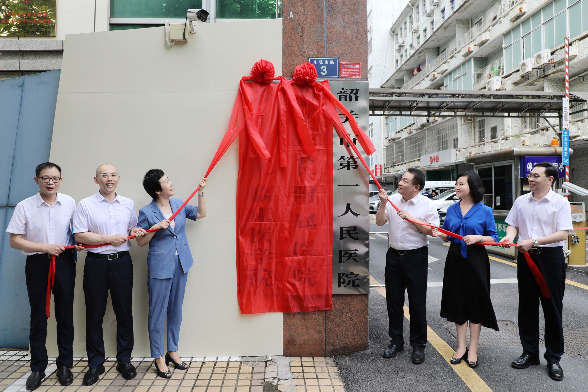 8月18日上午,韶关学院附属医院、韶关学院临床医学院挂牌仪式在韶关市第一人民医院举行。韶关市副市长罗海俊,韶关学院党委书记孔云龙、校长张晓红、党委副书记吴善添,韶关市卫生健康工委书记、市卫生健康局党组书记、局长徐建坤,韶关学院附属医院(韶关市第一人民医院)院长吴强共同为韶关学院附属医院、韶关学院临床医学院揭牌。这标志着韶关市政府与韶关学院正式共建共管韶关市第一人民医院,将通过整合优质医疗与教育资源,深化医教协同,为粤北地区医疗卫生事业发展注入强劲动力。