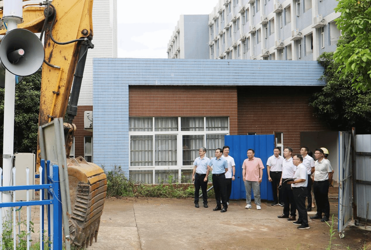 校领导一行深入校园主干道、食堂、学生宿舍、课室等重点场所,实地察看韶乐园善美区南侧山体滑坡地灾治理工程、33栋学生宿舍挖潜改造项目、明德区南侧围墙、知行区西侧围墙等关键区域,详细检查防台风措施落实、校园防蚊灭蚊、环境卫生整治、物资储备等情况,并就做好下一步工作提出具体指导意见。