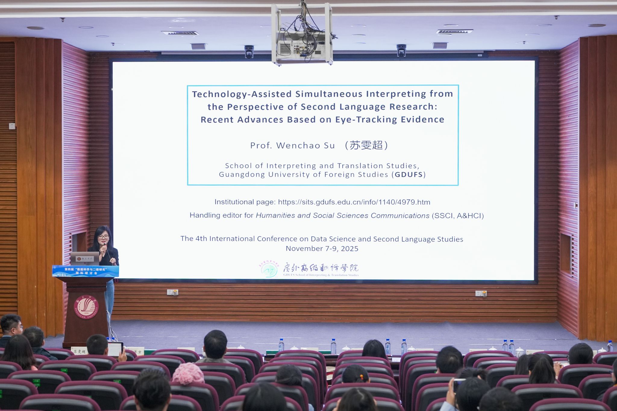 苏雯超以“Technology-assisted simultaneous interpreting from the perspective of second language research: recent advances based on eye-tracking evidence”为题作主旨报告