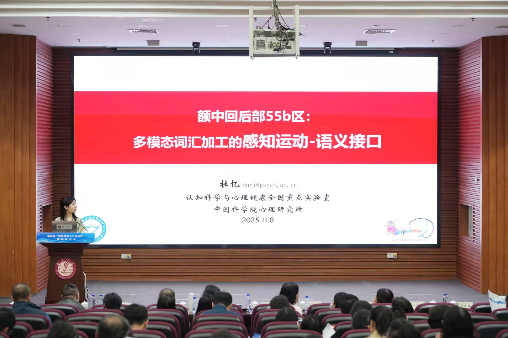杜忆以“额中回后部55b区:多模态词汇加工的感知运动——语义接口”为题作主旨报告