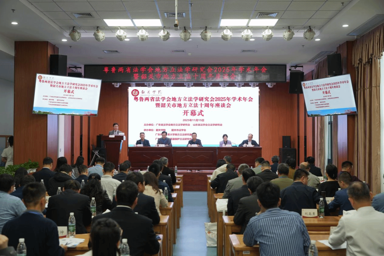 11月15日,由广东省法学会地方立法学研究会、山东省法学会立法学研究会主办,韶关学院、韶关市法学会、广东外语外贸大学地方立法研究基地、广东生态环境资源保护立法研究中心具体承办的粤鲁两省法学会地方立法学研究会2025年学术年会暨韶关市地方立法十周年座谈会在我校顺利召开。粤鲁两省一百多位地方立法领域的专家学者和实务工作者齐聚韶院,共同探讨地方立法工作的高质量发展。学校副校长郭会时出席会议并致欢迎辞。