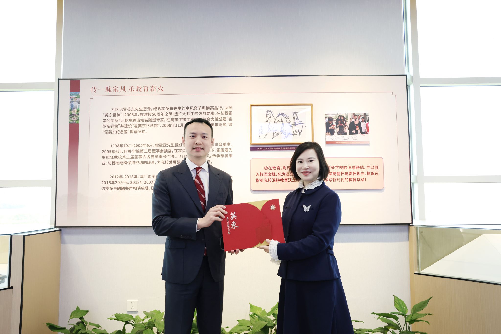 11月25日下午,广州市政协常委、香港霍英东集团副总裁霍启文先生来校调研指导,深度了解学校办学特色与发展成就,并出席韶关学院特聘教授聘任仪式。校党委书记孔云龙、校长张晓红,韶关市副市长肖智勇参加调研。