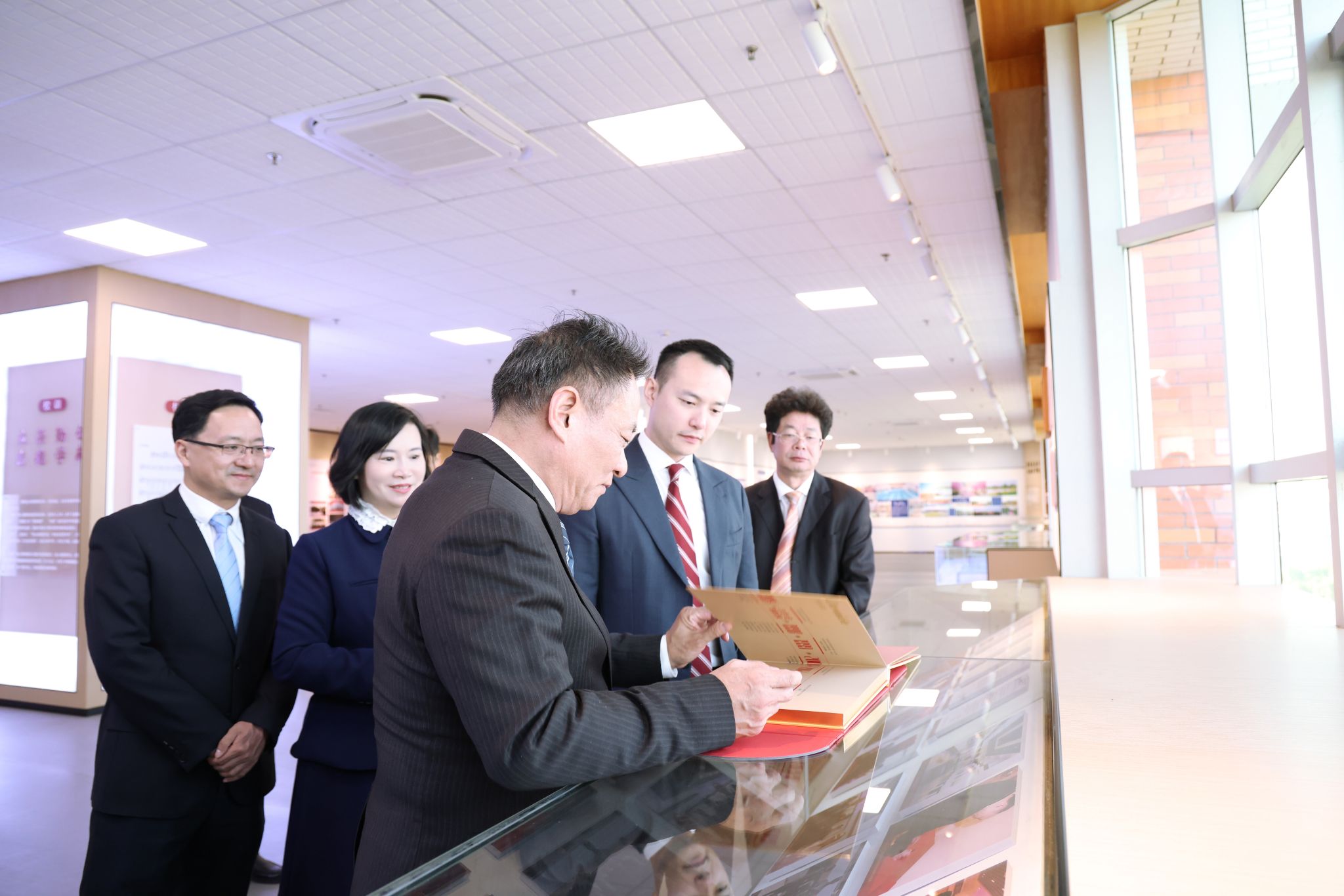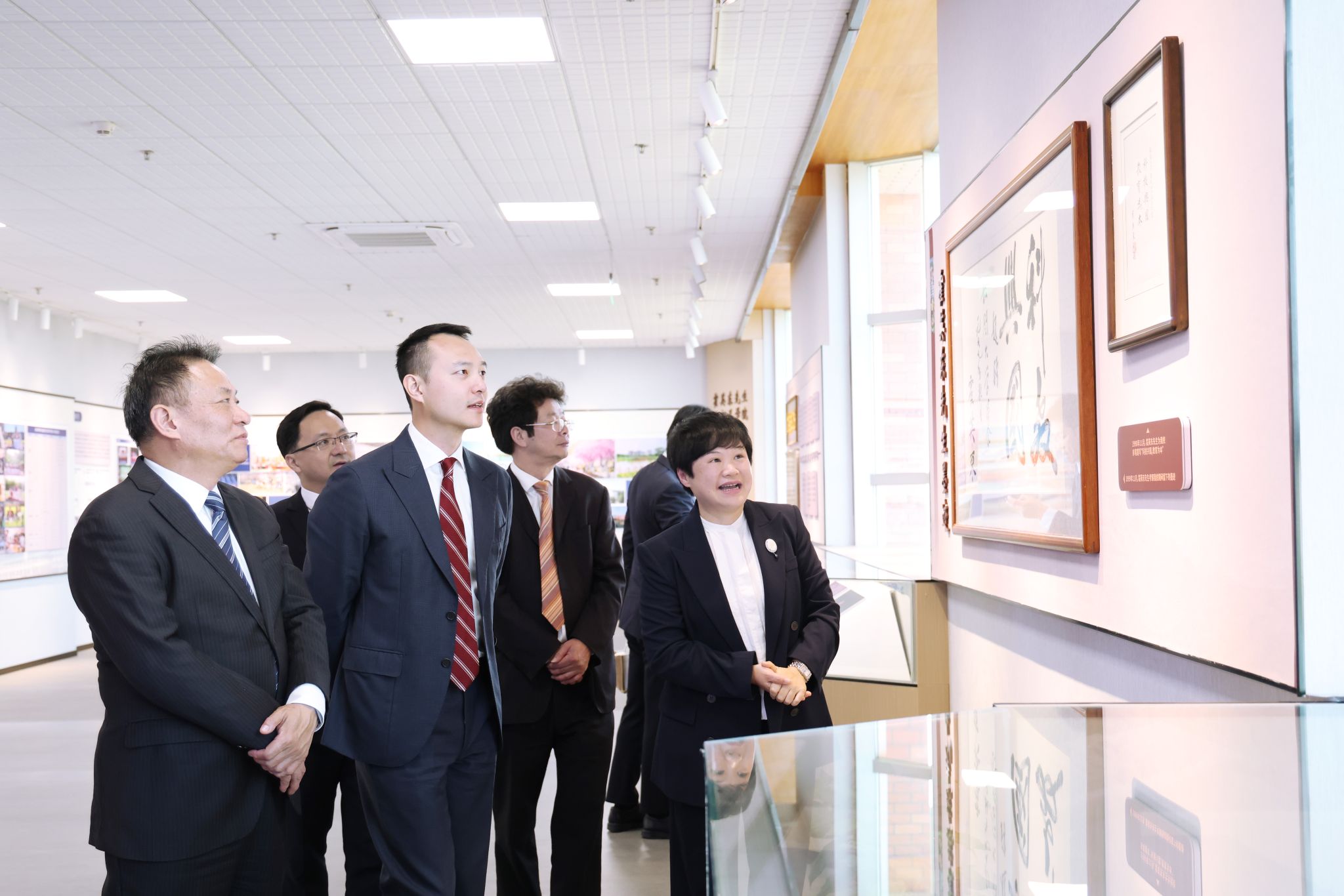 在学校校史展览厅,霍启文参观了“霍英东先生与韶关学院”专题展区,回顾霍英东先生对学校发展的支持与贡献。