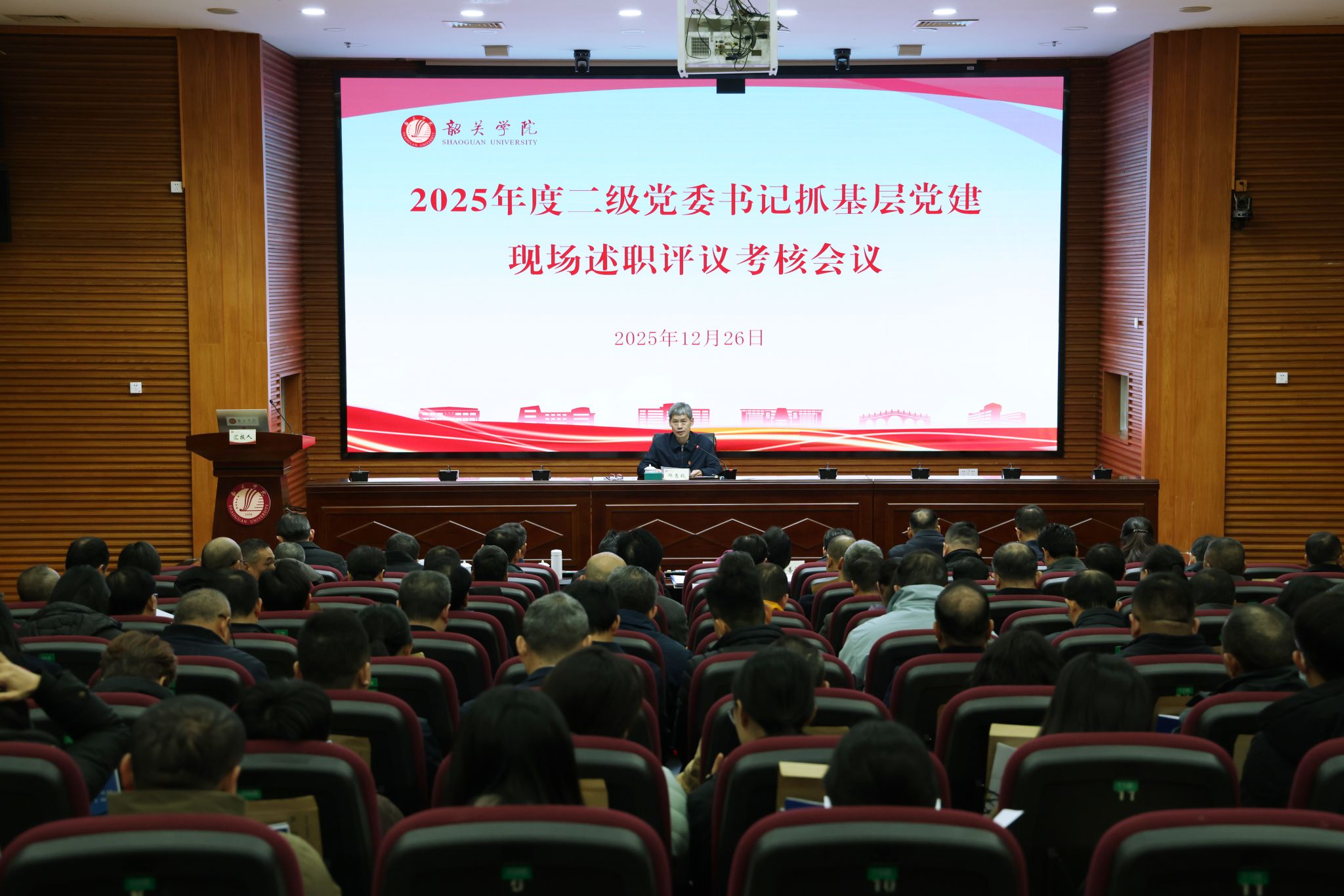 12月26日上午,我校召开2025年度二级党委书记抓基层党建现场述职评议考核会议,听取二级党委书记抓基层党建工作述职并进行评议考核。全体在家校领导出席会议。党委副书记、纪委书记、广东省监委驻韶关学院监察专员(负责学校党委工作)邓惠毅主持会议并讲话。
