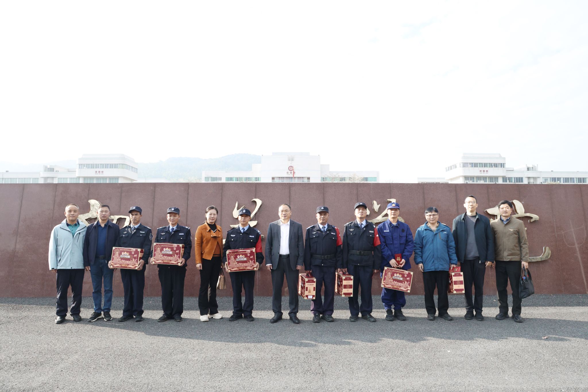 2月15日上午,副校长田广增带队开展春节前夕走访慰问活动,亲切看望慰问春节期间坚守工作岗位的值班人员、校卫队员、后勤服务保障工作人员,以及附属中学、医学院附属医院、附属医院工作人员,同步检查指导春节期间校园安保、后勤服务等各项安全保障工作。