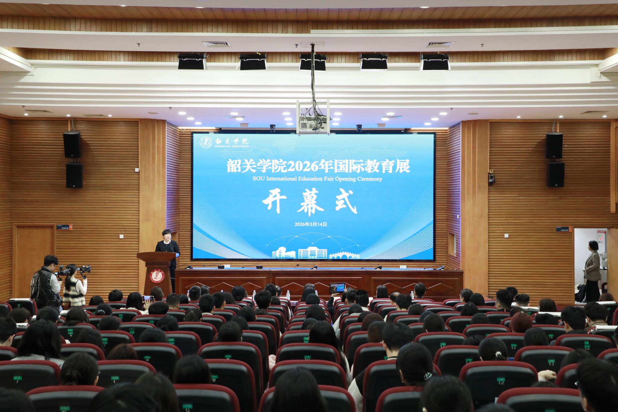 何金明在开幕式上致辞。他表示,此次教育展既是响应国家“推进高水平教育对外开放”号召的务实之举,也是落实广东省“教育对外开放工程”的重要实践。2026年是国家“十五五”规划开局之年,也是韶关学院建设“高水平应用创业型大学”的关键之年,各方以教育为桥共绘国际化育人新图景。未来,学校将持续深化与海外院校及教育机构的实质性合作,推动多维度合作项目落地,助力学子走向世界。他希望同学们以展会为契机,在交流中拓宽国际视野,找准人生新坐标。