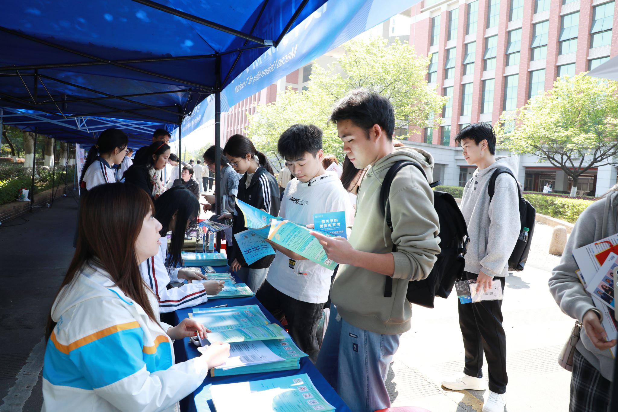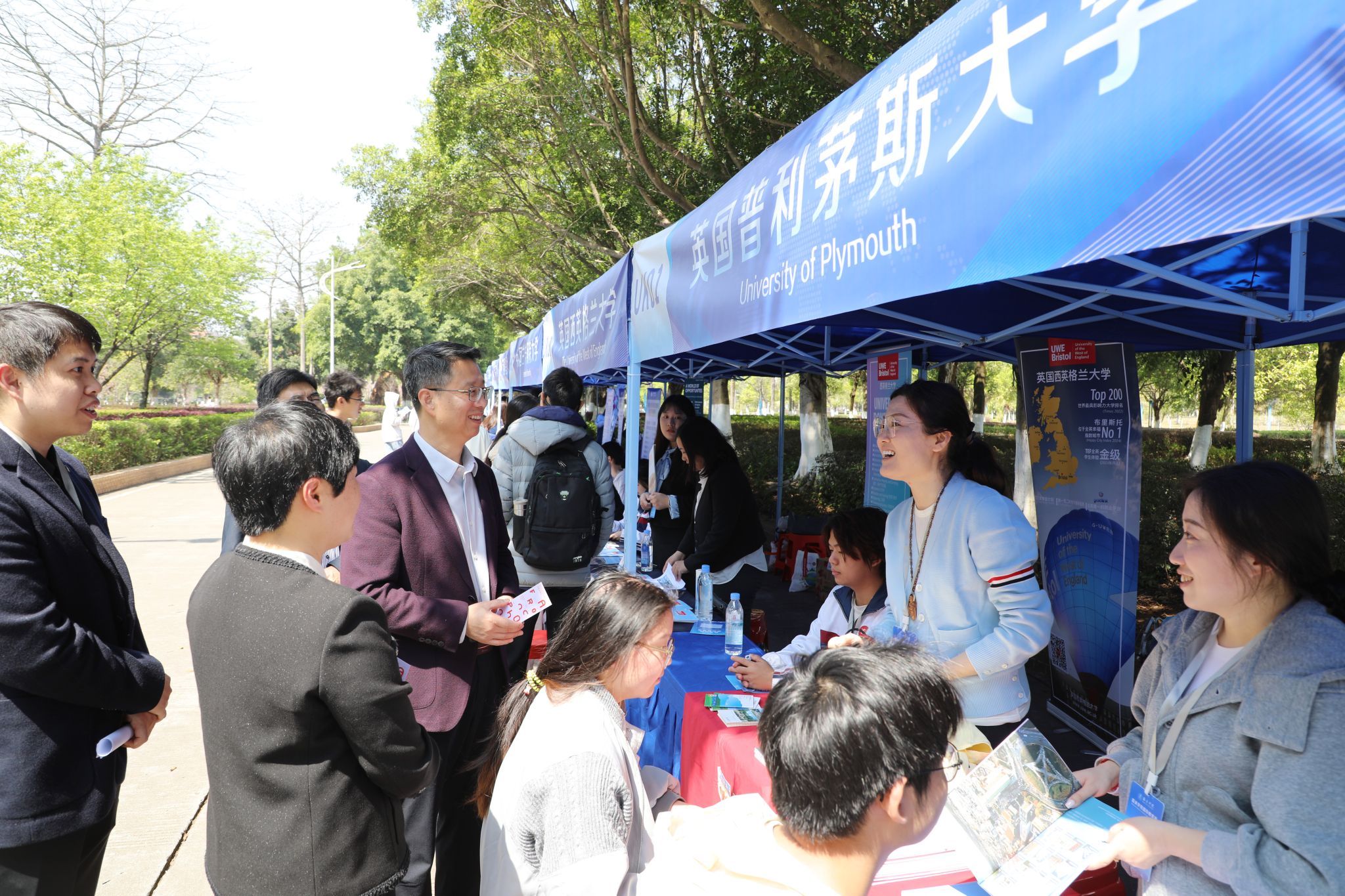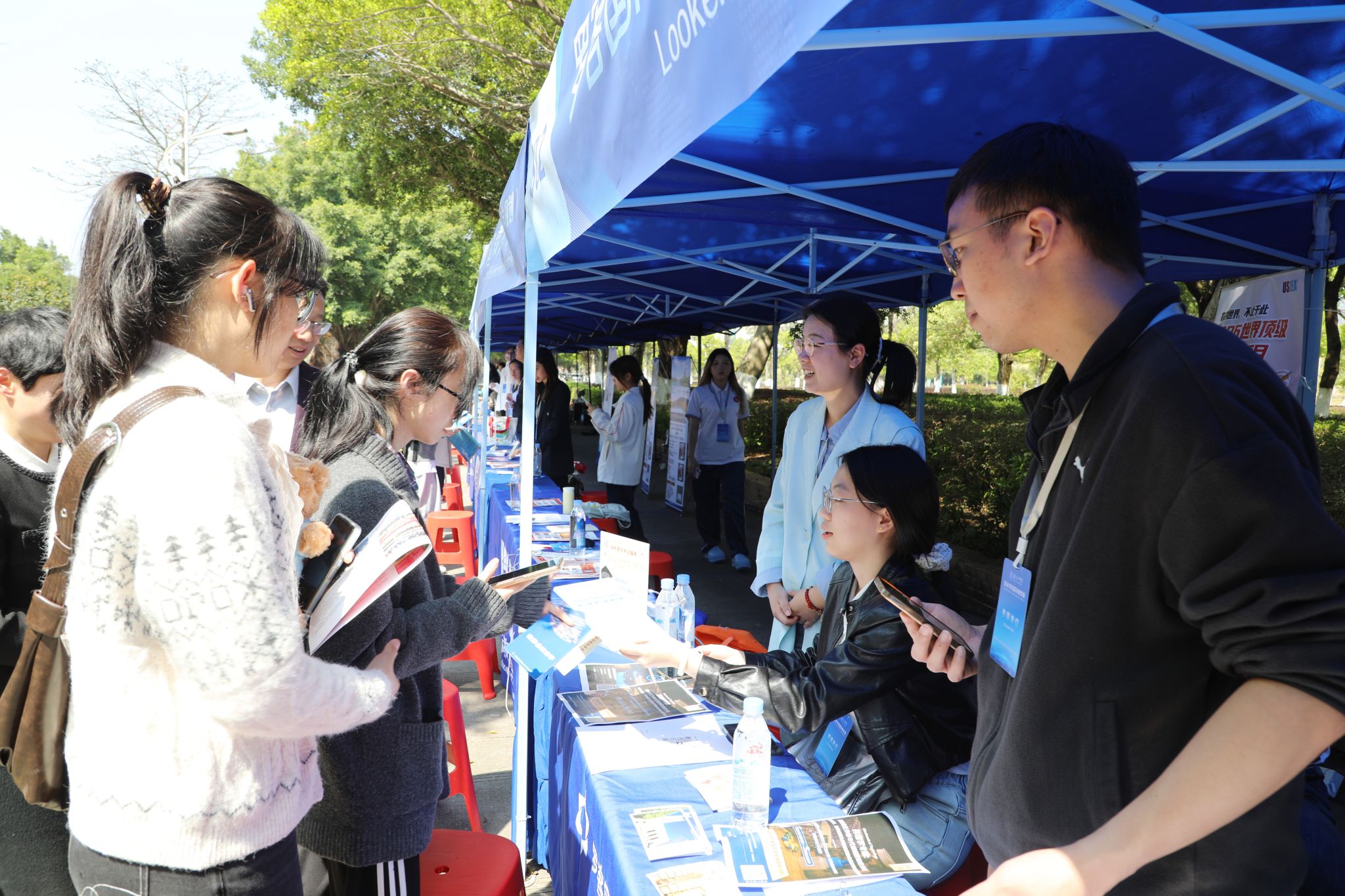 本次教育展采用“展位展示+主题讲座”的双板块模式,精心打造全方位、沉浸式、专业化的国际教育服务平台。其中,展位区设于图书馆正门的九龄大道旁,讲座区则同步在图书馆学术报告厅(主会场)、学术演讲厅(分会场)开设,各环节衔接有序,内容丰富,吸引全校师生踊跃参与。