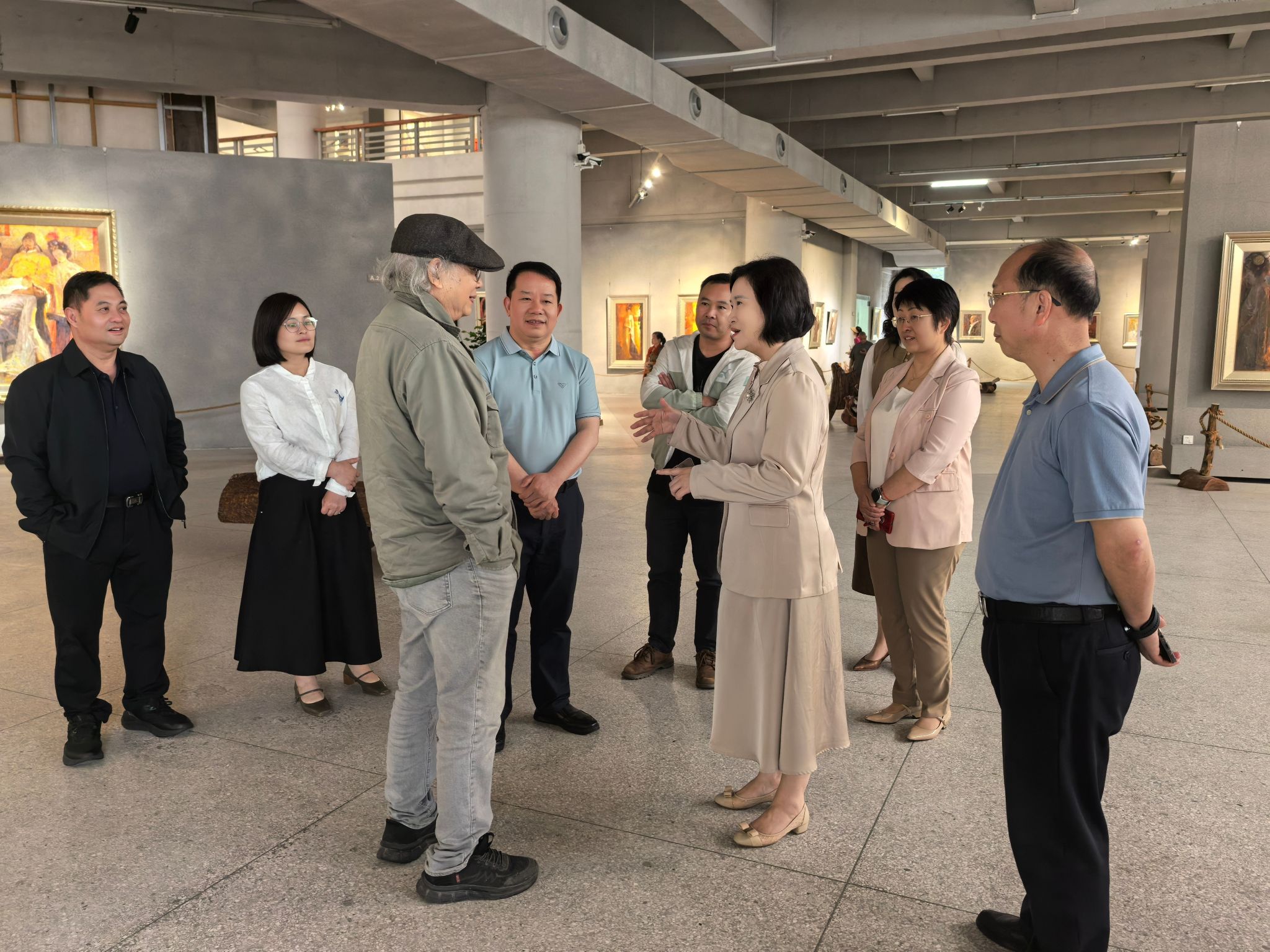 调研期间,我校一行还专程参观了享誉业界的涂志伟美术馆。在与美术馆创办人、著名画家涂志伟先生的亲切交流中,大家共同探讨了艺术教育与地方文化品牌建设的联动可能。张晓红提出,学校期待与涂志伟美术馆建立长效合作机制。一方面,希望将美术馆打造为学校重要的美育实践基地,开展沉浸式艺术教育,赋能“大思政课”与校园文化建设;另一方面,将充分发挥学校多学科交叉优势,围绕美术馆IP,在艺术策展、文化传播、旅游产品开发、品牌营销等方面提供智库支持,共同推动翁源文化艺术与农业、旅游等产业深度融合,赋能区域农文旅高质量发展。