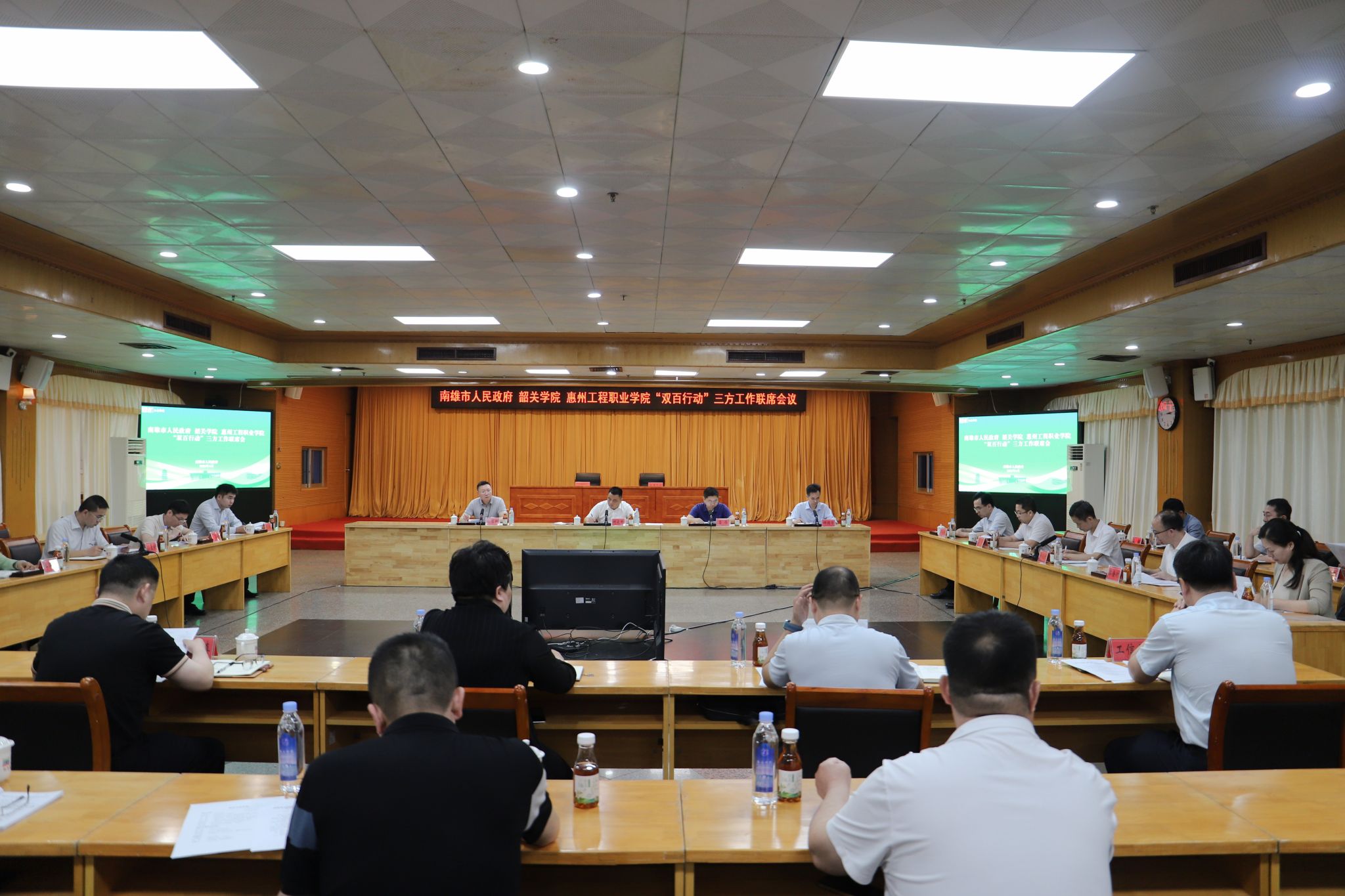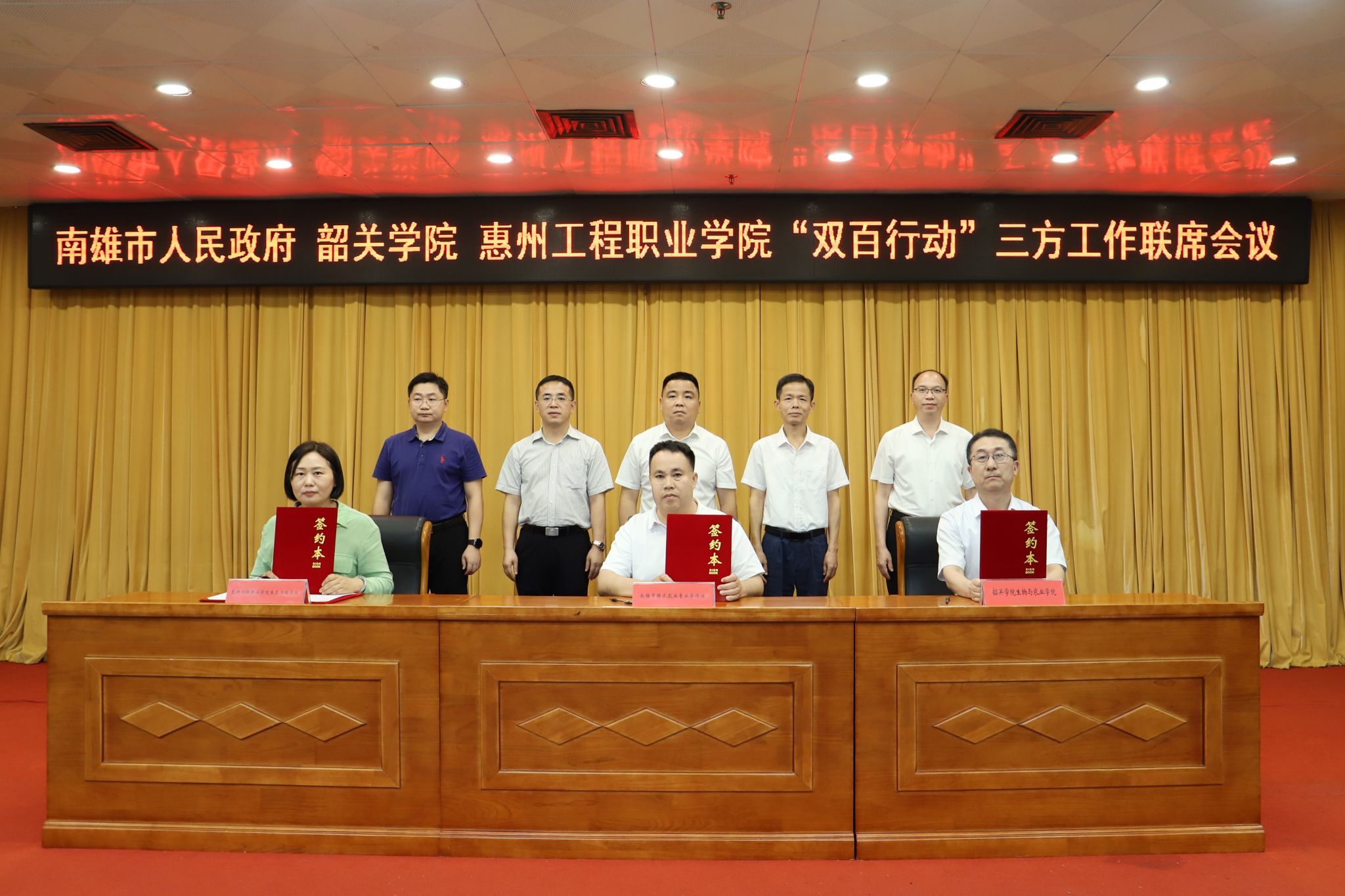 4月16日,韶关学院、惠州工程职业学院与南雄市人民政府“双百行动”三方工作联席会议在南雄市召开。会议全面总结三年来“双百行动”三方共建成效,部署下一阶段任务。韶关学院党委书记钟成材、副校长郭会时,南雄市委书记柯建忠、惠州工程职业学院党委书记孙立武出席会议。南雄市委常委、统战部部长杨耀轩主持会议。