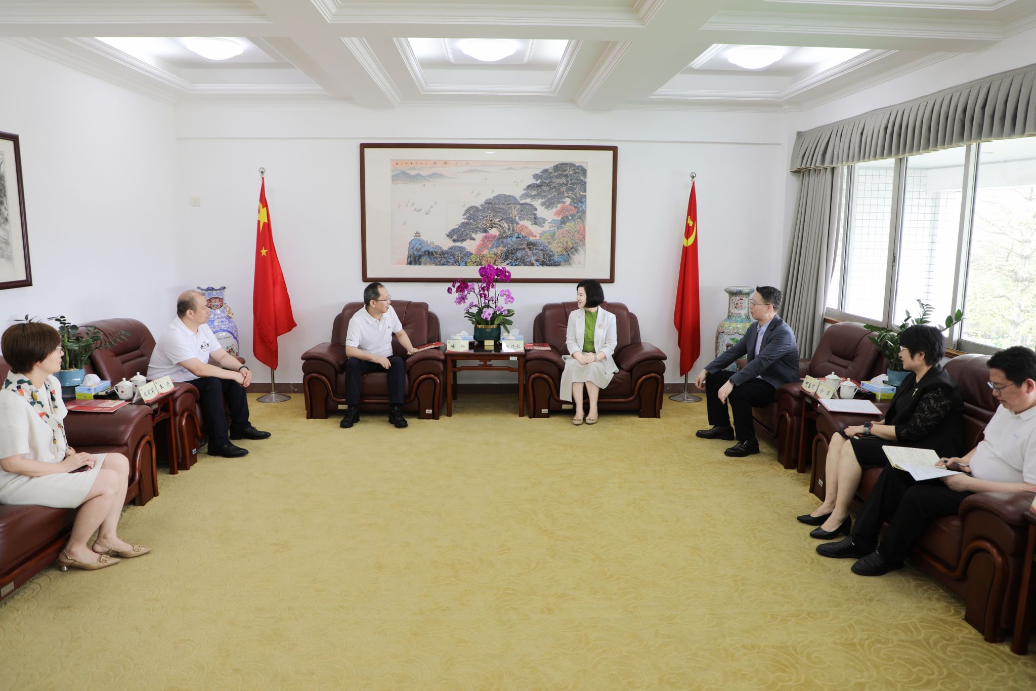 4月17日上午,深圳华侨城国际旅行社有限公司党支部书记、总经理陈扬率队来校交流。学校校长张晓红,副校长何金明与陈扬一行座谈交流。