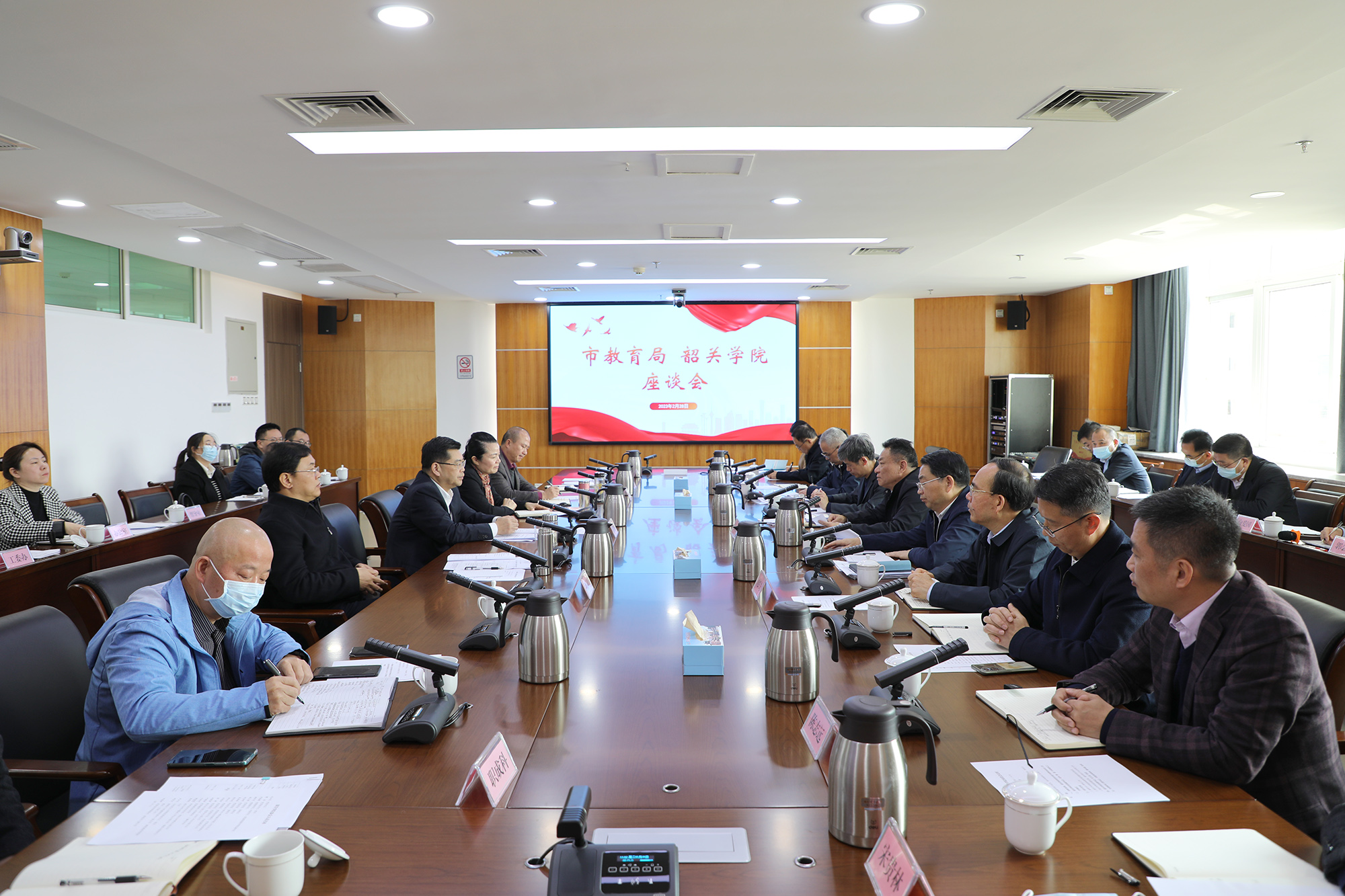 黄令遥对我校在促进韶关市基础教育发展、骨干教师培训、教育对口帮扶、教师资格考试等方面给予充分的肯定。他指出,市教育局将从强化党对学校的全面领导、落实立德树人根本任务、优化教育资源配置、教育改革、职业教育服务发展能力的建设、教师队伍建设等方面推进韶关市基础教育高质量发展。他表示,今后将从教育科研、教师队伍建设、教育改革、思政体系建设、科普研学等方面进一步推进与学校的合作。