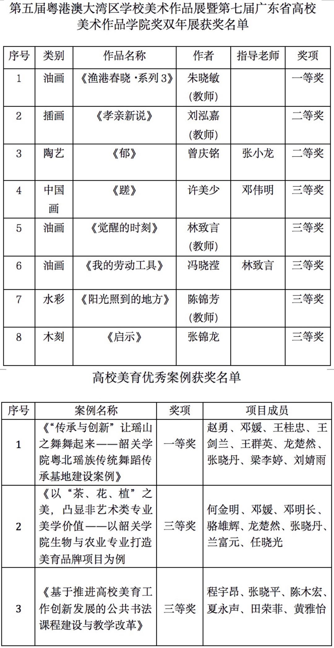 获奖名单