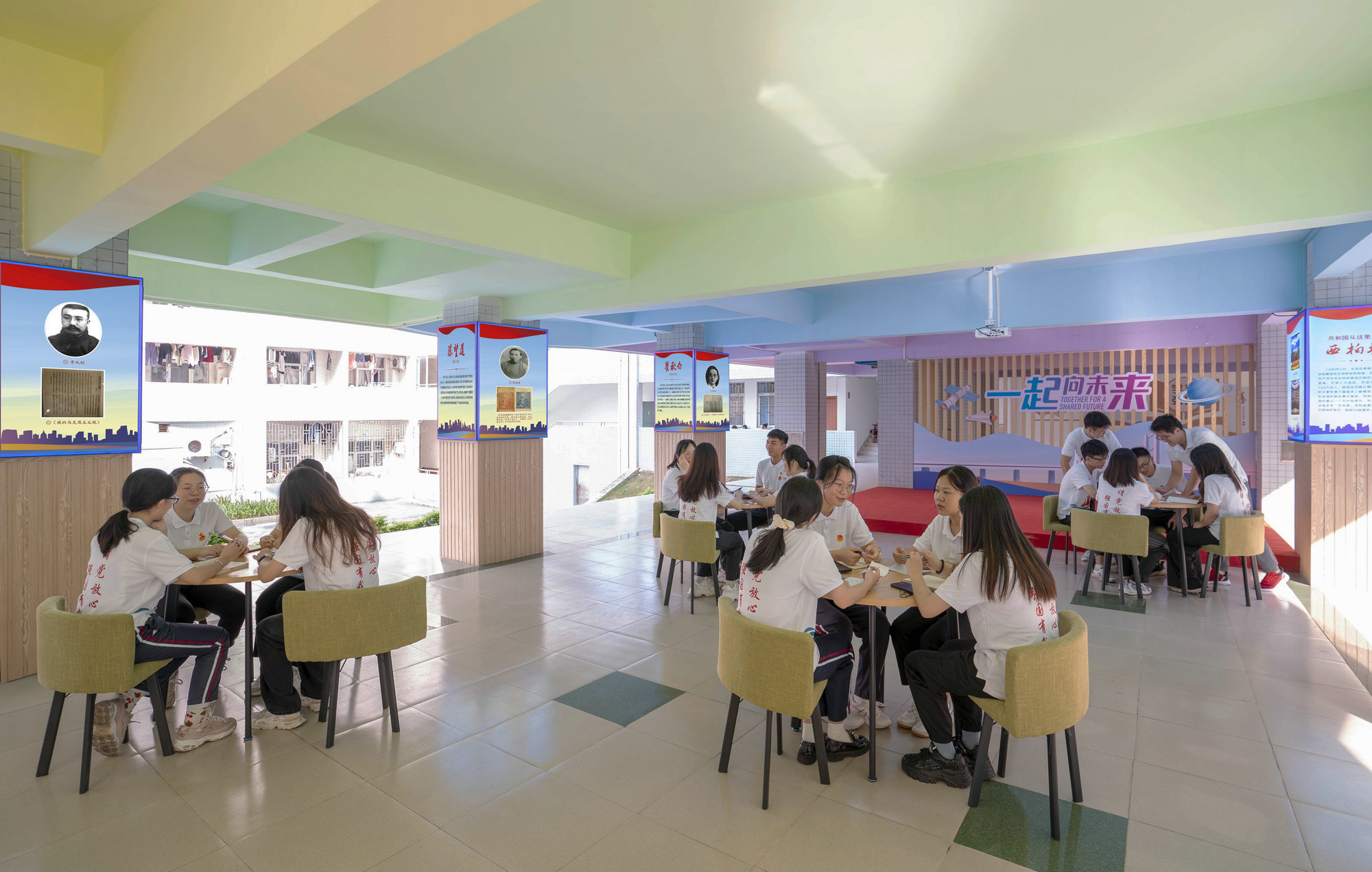 今年9月学生返校期间,学校“红色堡垒”照片“刷爆”学生的微信朋友圈,学生社区新建的党建文化阵地让返校报到的同学们眼前一亮,大家纷纷在朋友圈中分享“惊喜”。这份“惊喜”是韶关学院党委今年基层党建工作的重点任务之一:在学生社区中全覆盖建设党建文化阵地,引入社区空间“场景式”育人理念,转变学生社区单一生活空间功能,集成楼宇内和楼宇间公共和半公开空间,因地制宜将学生社区打造成为既有鲜明党建元素,又有浓厚专业文化的“红色堡垒”。目前学校已实现每个学生社区配有一个党建文化展示区、一间标准规范党员活动室、一间大学生党史学习教育体验室。曾经学生社区内大厅、走廊里的“空白墙”变成了随处可见的“党建墙”“文化墙”,学生社区成为“理论学习在社区、价值引领在身边”的党建文化阵地,“学校、二级学院、学生社区”三位一体的学校党建新矩阵构建形成。“红色堡垒”赋予社区空间思想政治教育功能,构筑蕴含中国精神、中国价值、中国力量的党建文化,打造特色鲜明、生动活泼、内涵丰富的校园文化,建设开放协同、交叉融合、创新共享的专业文化,用时代思想铸魂、校园文化润心、专业文化强能,让学生潜移默化地接受教育。