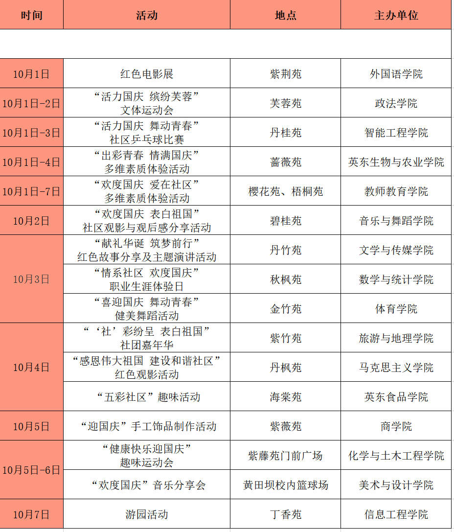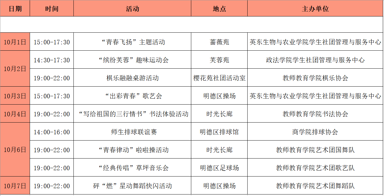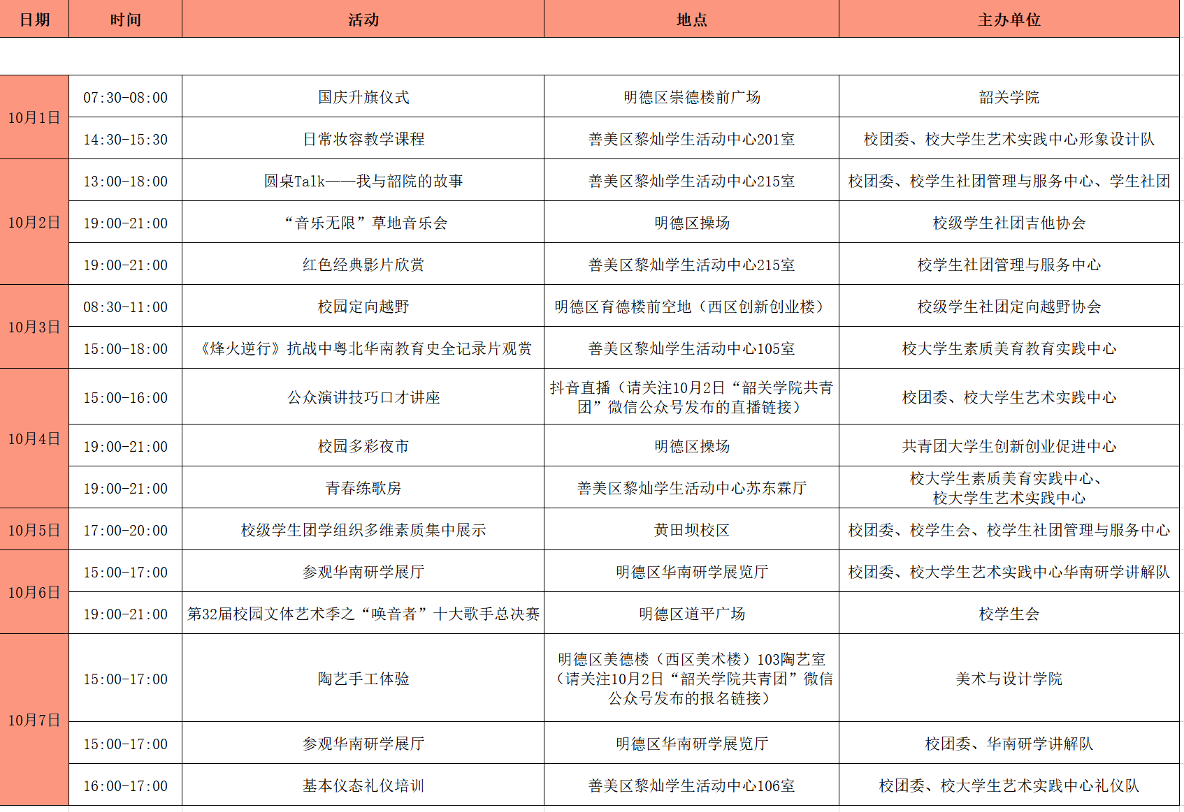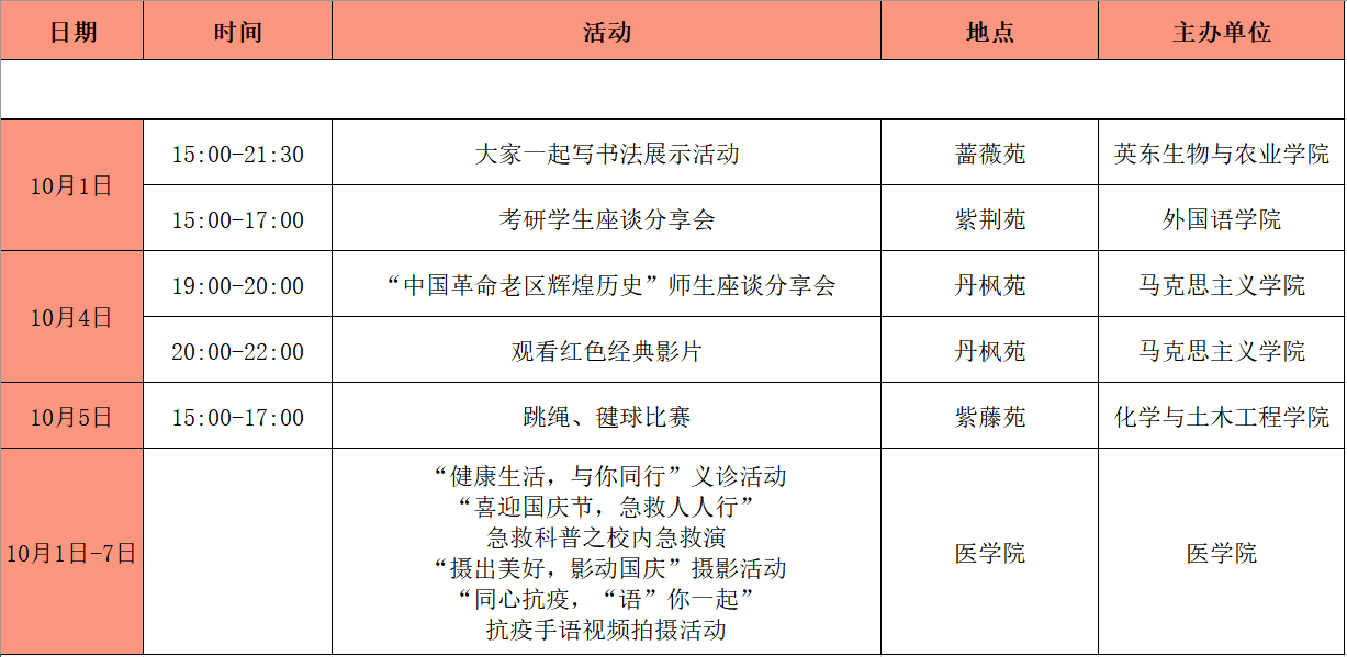 韶院2022年国庆假期校内活动安排表