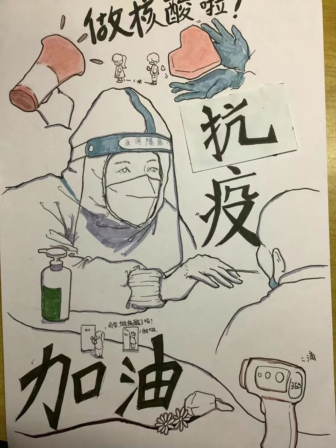 岁月静好,是因为有人在为我们负重前行,感谢逆风而行的白衣天使们,感谢为我们发放物资的老师和志愿者们,是你们用肩膀为我们扛起了重担。