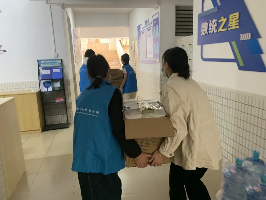 每天早上起床就有志愿者将早餐送至门口,虽说只能呆在宿舍,可是学校一直在努力照顾我们的生活,一日三餐甚至还有宵夜,每一顿都是能够吃饱的,特别感谢医护人员和志愿者们的辛苦付出。