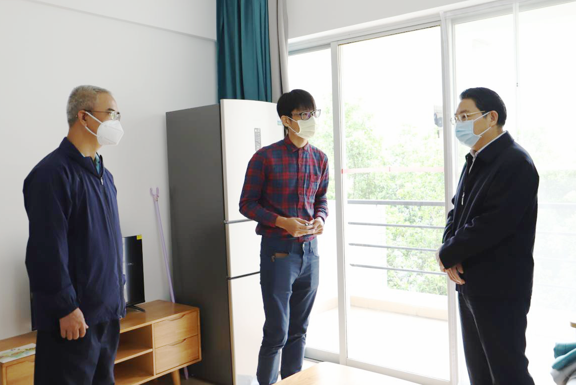 廖益一行在红棉苑与台籍教师亲切交谈,深入了解疫情防控期间台籍教师在校的生活和工作情况,叮嘱他们要按照学校疫情防控要求落实好核酸检测并做好个人防护。