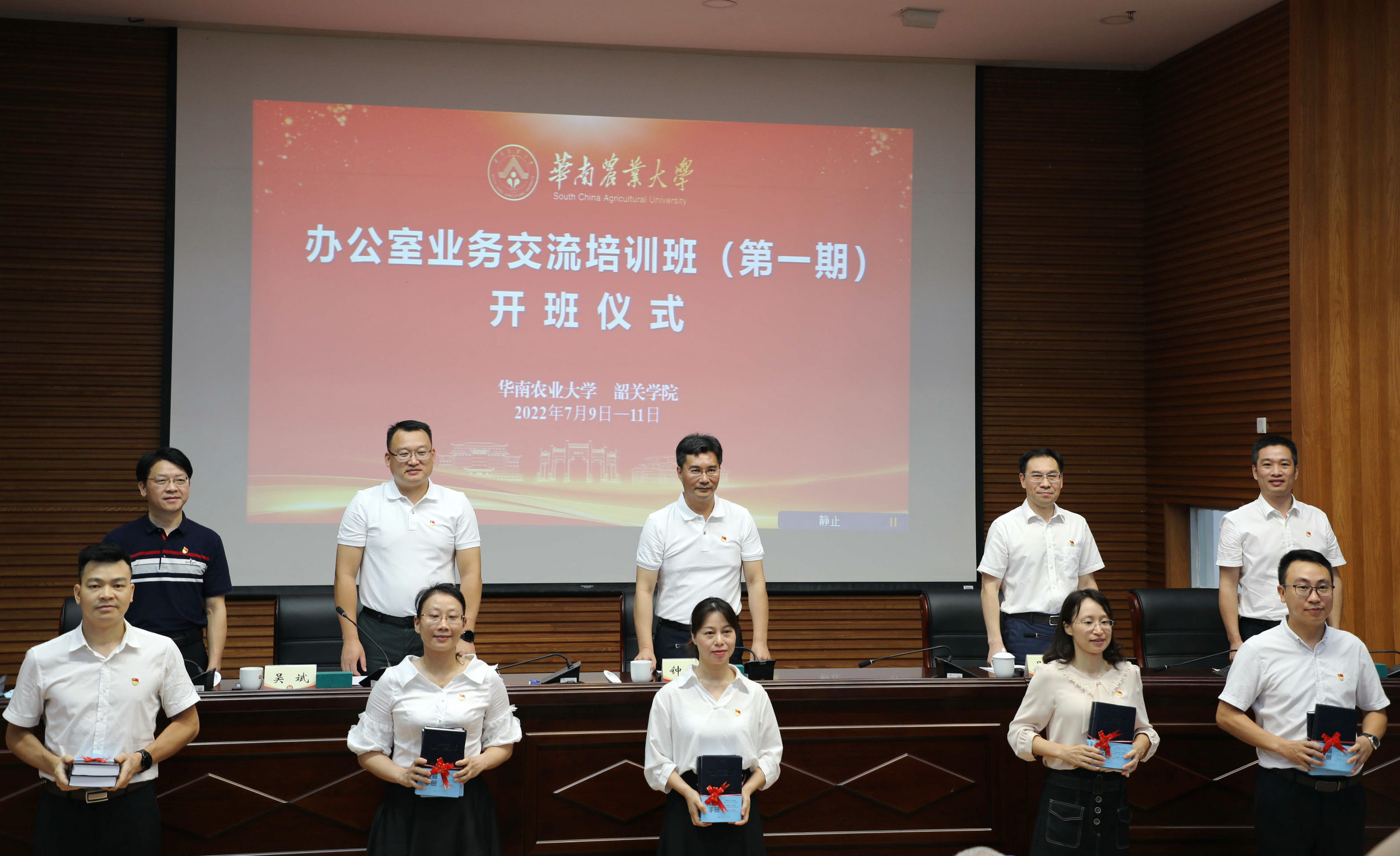 仪式上,吴善添、钟强、陈志远等为两校学员代表赠送培训书籍。华南农业大学唐军梅、韶关学院邹云作为学员代表,围绕如何协调做好办公室业务服务工作发言,她们表示要在大局意识上做表率,在担当精神上做表率,在服务意识上做表率,扎实做好每一项工作,不断推动各自学校高质量发展。