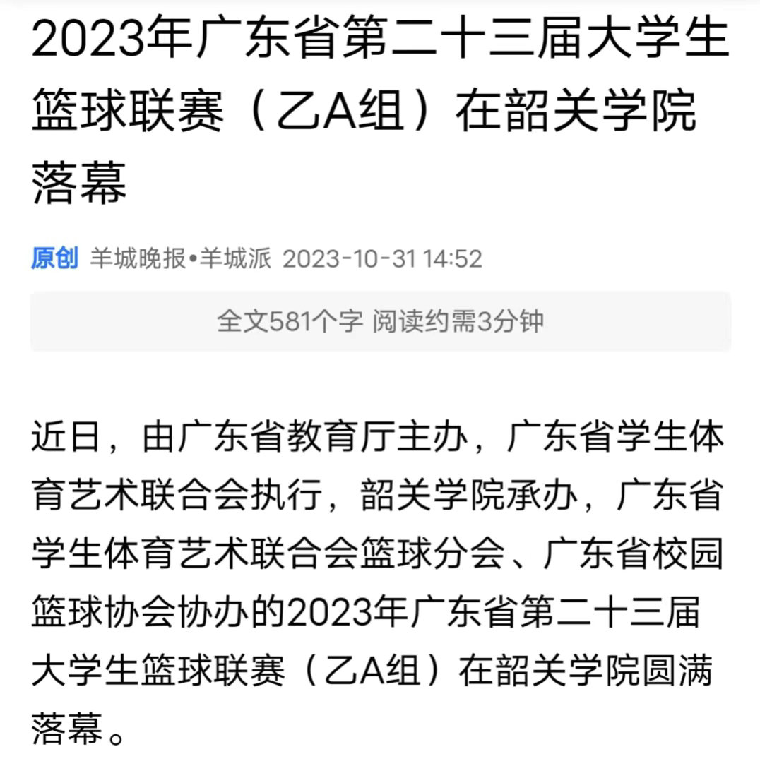 近日,由广东省教育厅主办,广东省学生体育艺术联合会执行,韶关学院承办,广东省学生体育艺术联合会篮球分会、广东省校园篮球协会协办的2023年广东省第二十三届大学生篮球联赛(乙A组)在韶关学院圆满落幕。