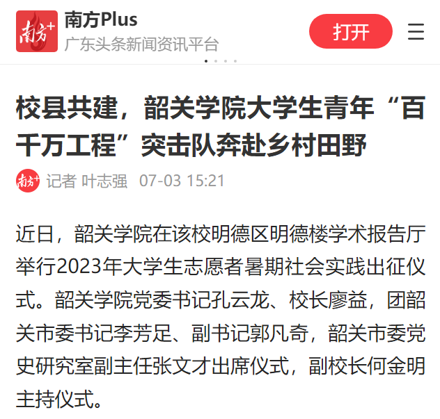 据悉,为做好广东青年大学生“百千万工程”突击队行动,韶关学院团委组织学校大学生青年发挥学校的科研优势和人才优势,根据县、镇的实际需求,精准对接,以“下乡对接、长期跟进”的形式开展结对帮扶。