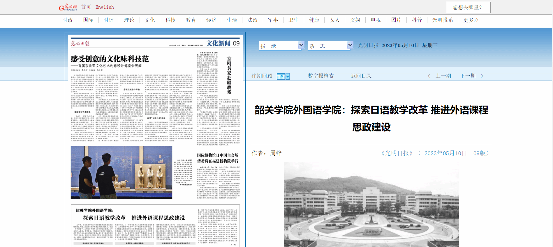 2022年6月,为进一步推动学院多维素质能力培育培养工作,韶关学院外国语学院召开大学生多维素质能力培育培养工程推进会,对前期工作进行总结,并提出下一阶段工作目标。在教学内容方面,韶关学院在课程中有机融入地方文化、历史文化,特别是韶关红色文化基因等思政教育元素,拓展日语专业课程的文化属性和精神品格。在融入方式上,寻找专业知识与思政元素的“植入”点,实现思政元素与教学内容深度融合。探索日语专业课程内容自身的特征和规律,运用画龙点睛式、专题嵌入式、元素化合式、隐性渗透式等多种融合手段,实现寓道于教,寓德于教。
