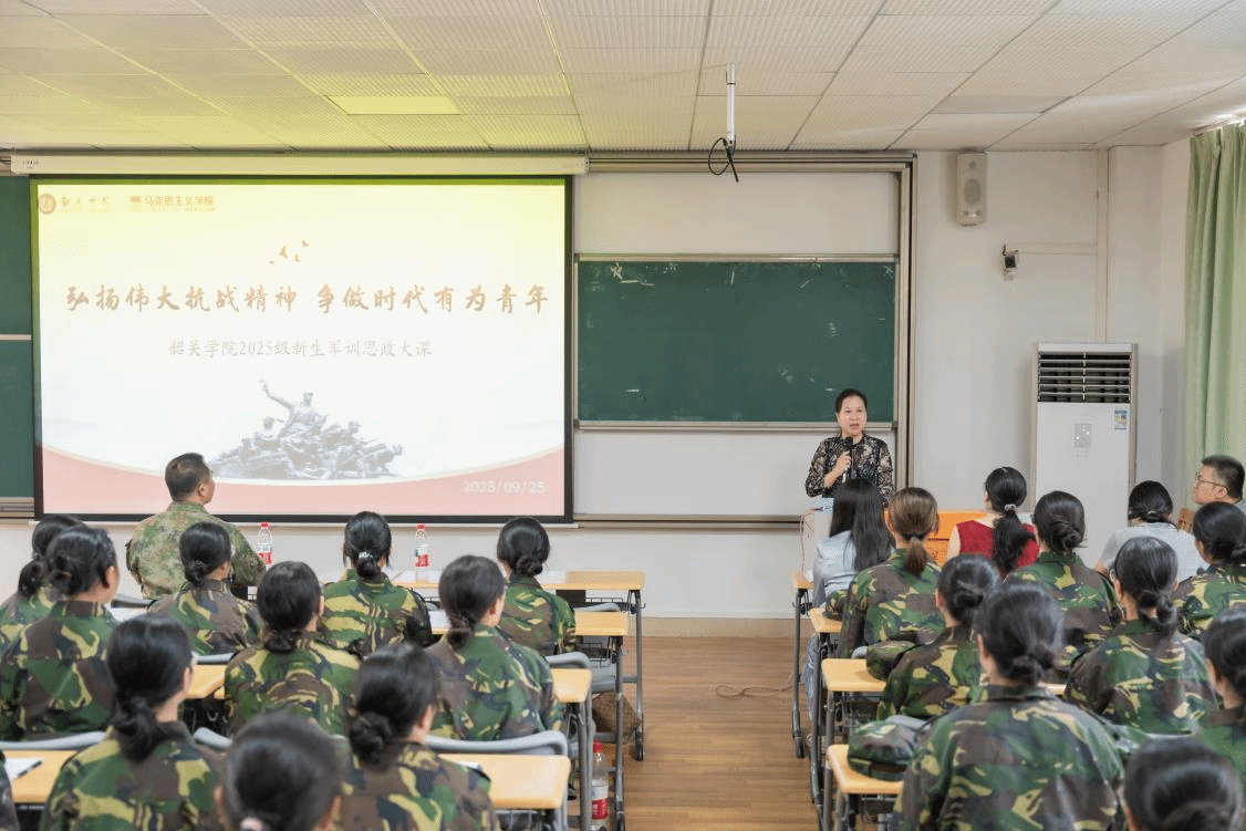 “军训不仅是意志的磨砺,更是信仰的培育。我们希望通过这样的‘大思政课’,让青年学子在历史与现实的对话中,读懂‘中国共产党为什么能’,在青春赛道上跑出属于新时代的加速度。”韶关学院马克思主义学院院长薛晓芳表示,此次军训思政大课,通过“历史教育—国防启蒙—榜样示范—思想互动”的四维模式,让新生在沉浸式体验中深化了对“弘扬伟大抗战精神”的理解。“接下来,学校将通过红色研学、国防实践、志愿服务等活动,让伟大抗战精神真正内化于心,外化于行。”